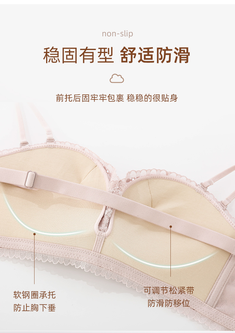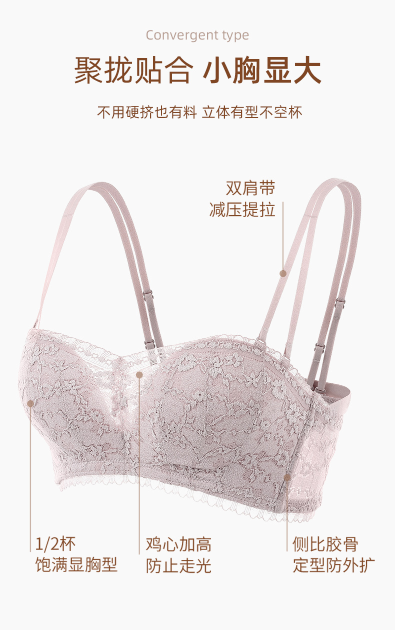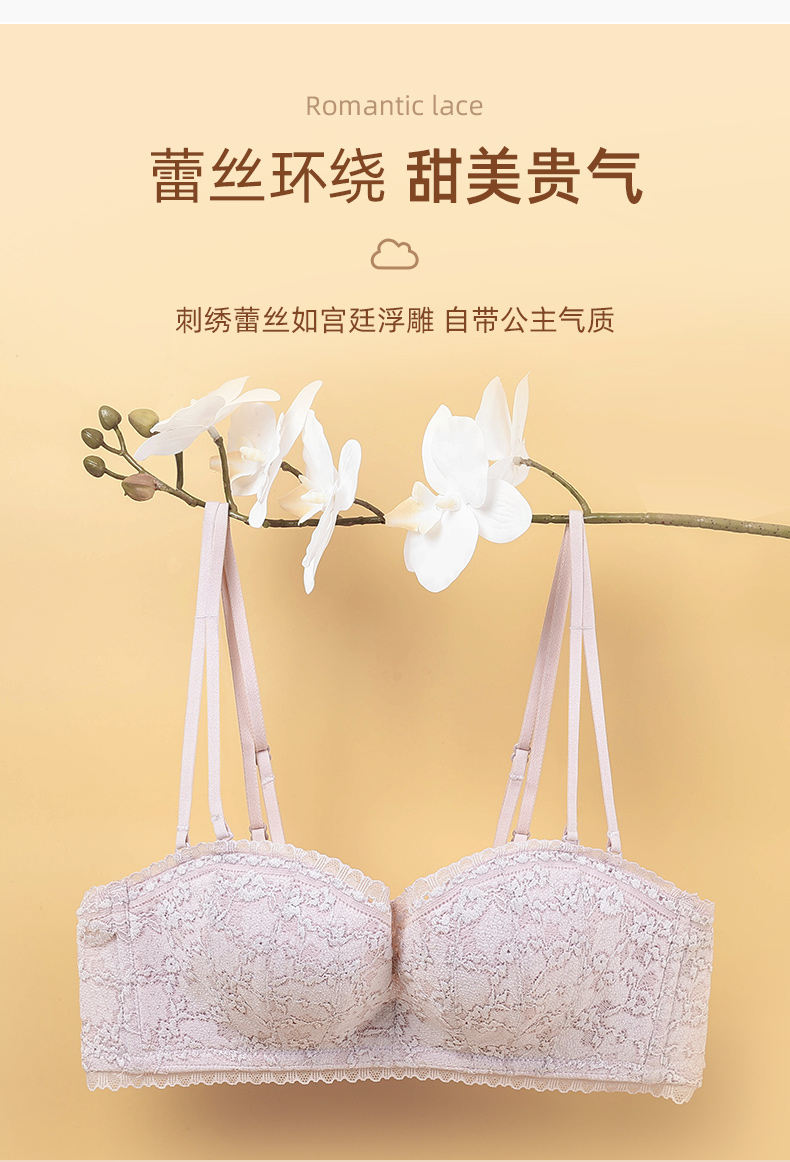雅黛丽内衣女抹胸无肩带聚拢防滑裹胸罩性感蕾丝纯欲美背女士文胸