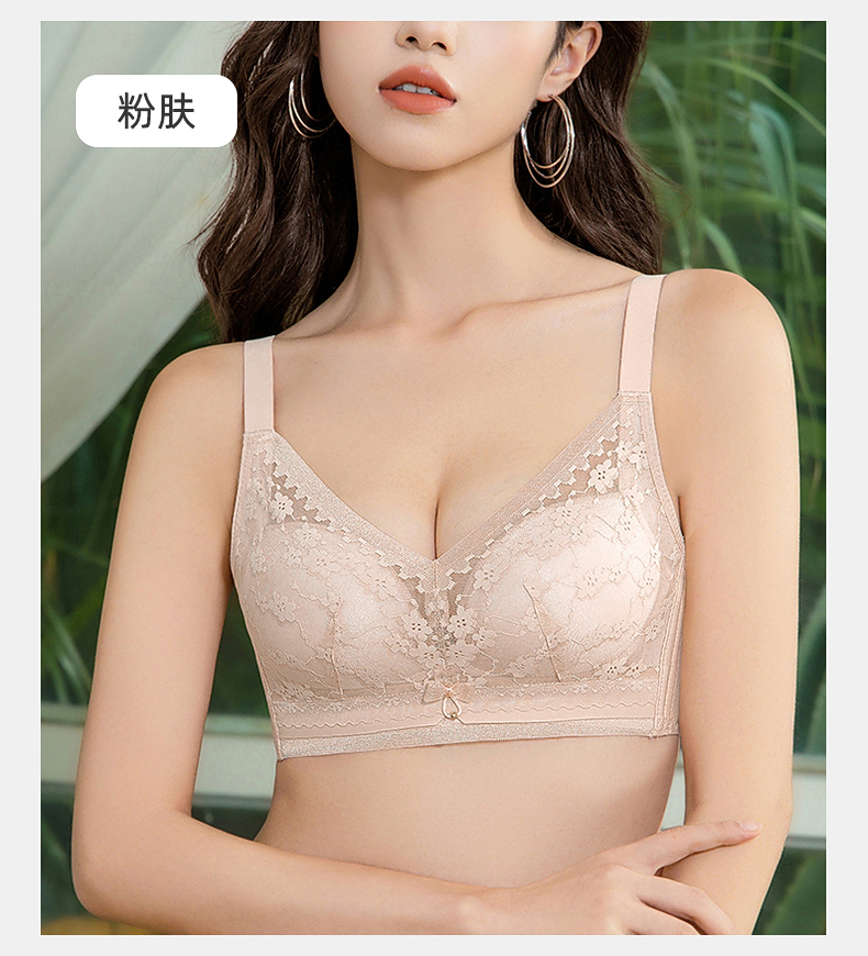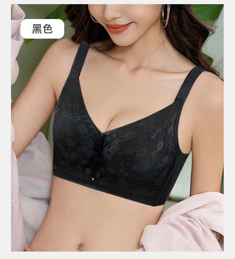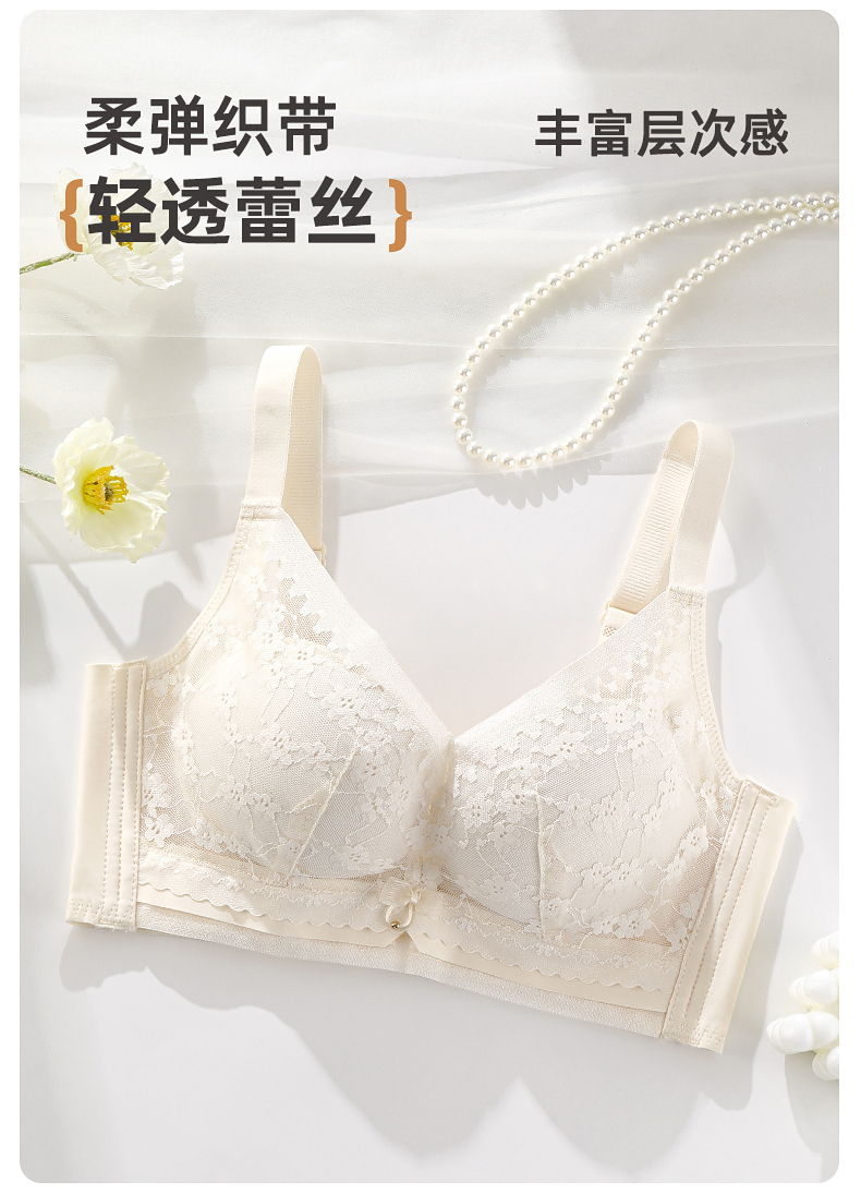 雅黛丽内衣女大胸显小性感蕾丝聚拢文胸无钢圈薄款全罩杯调整型胸罩