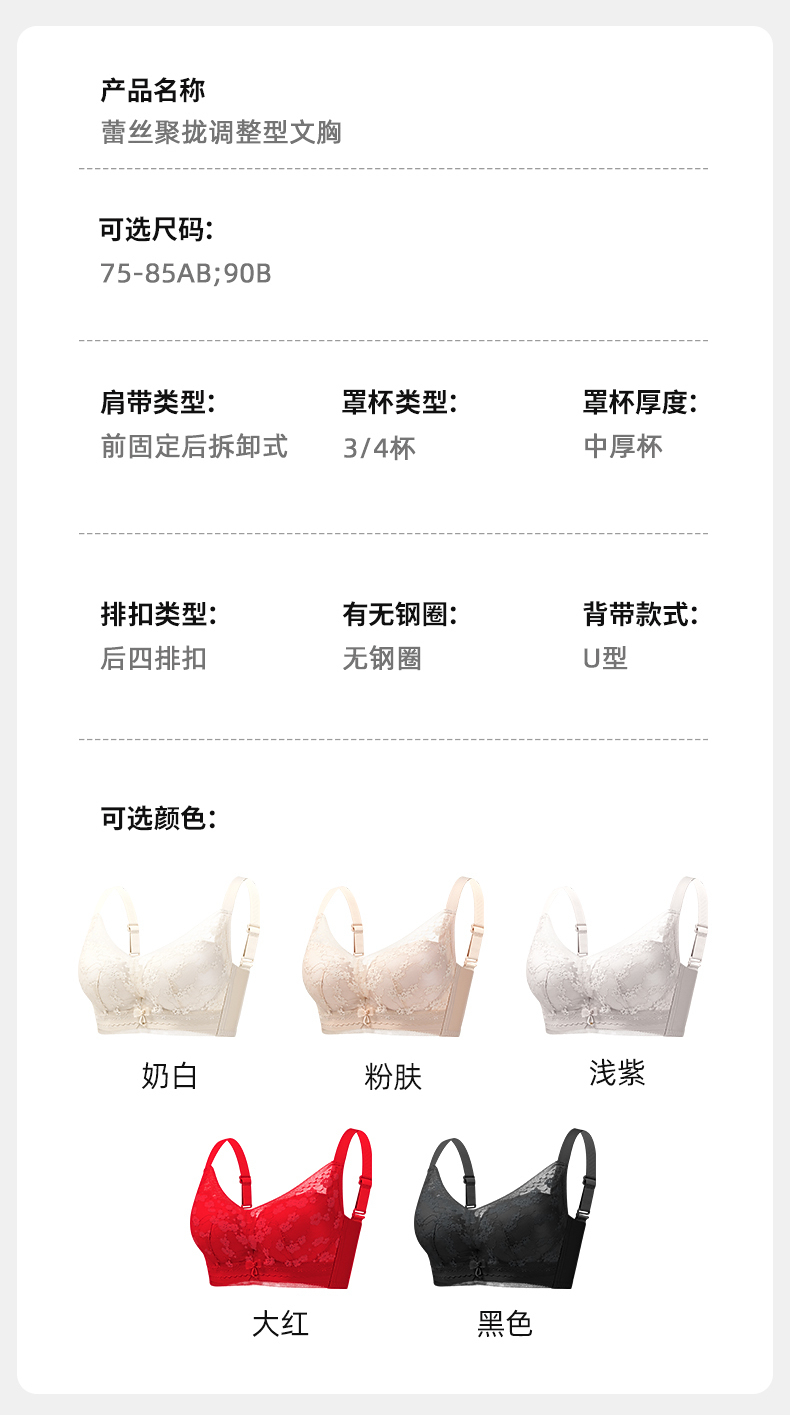 雅黛丽内衣女聚拢小胸文胸2024新款无钢圈收副乳防下垂调整型胸罩