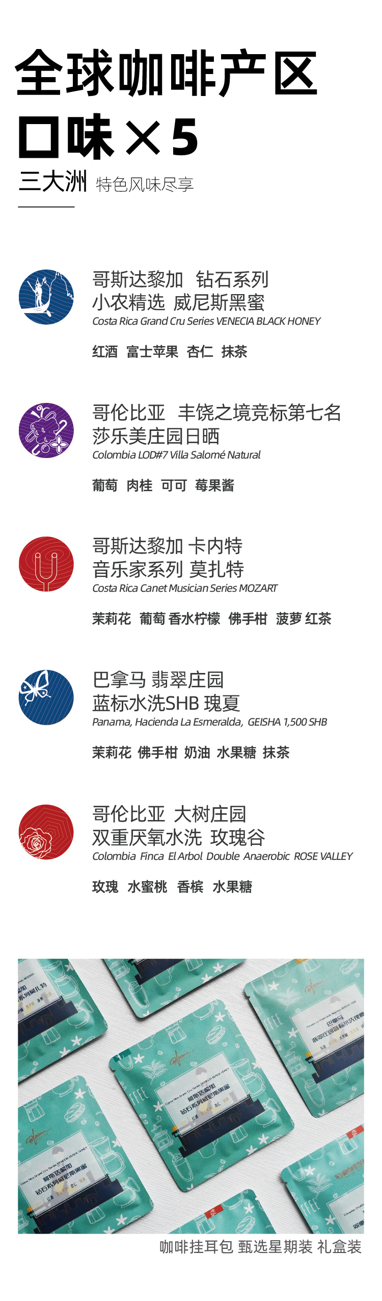 铂澜甄选星期装滤泡式挂耳咖啡新鲜现磨10袋精品礼盒5种单品包邮
