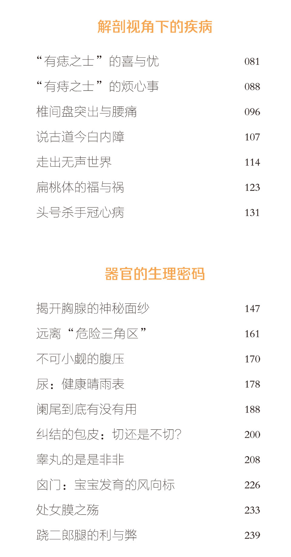 分为3个部分:献祭者与执刀人,解剖视角下的疾病,器官的生理密码。每个惊奇有趣的故事背后,都凝聚着无数探索者的智慧与勇气。翻开这本书,见证解剖刀划开的不只是躯体,更是蒙蔽真理的重重迷雾。