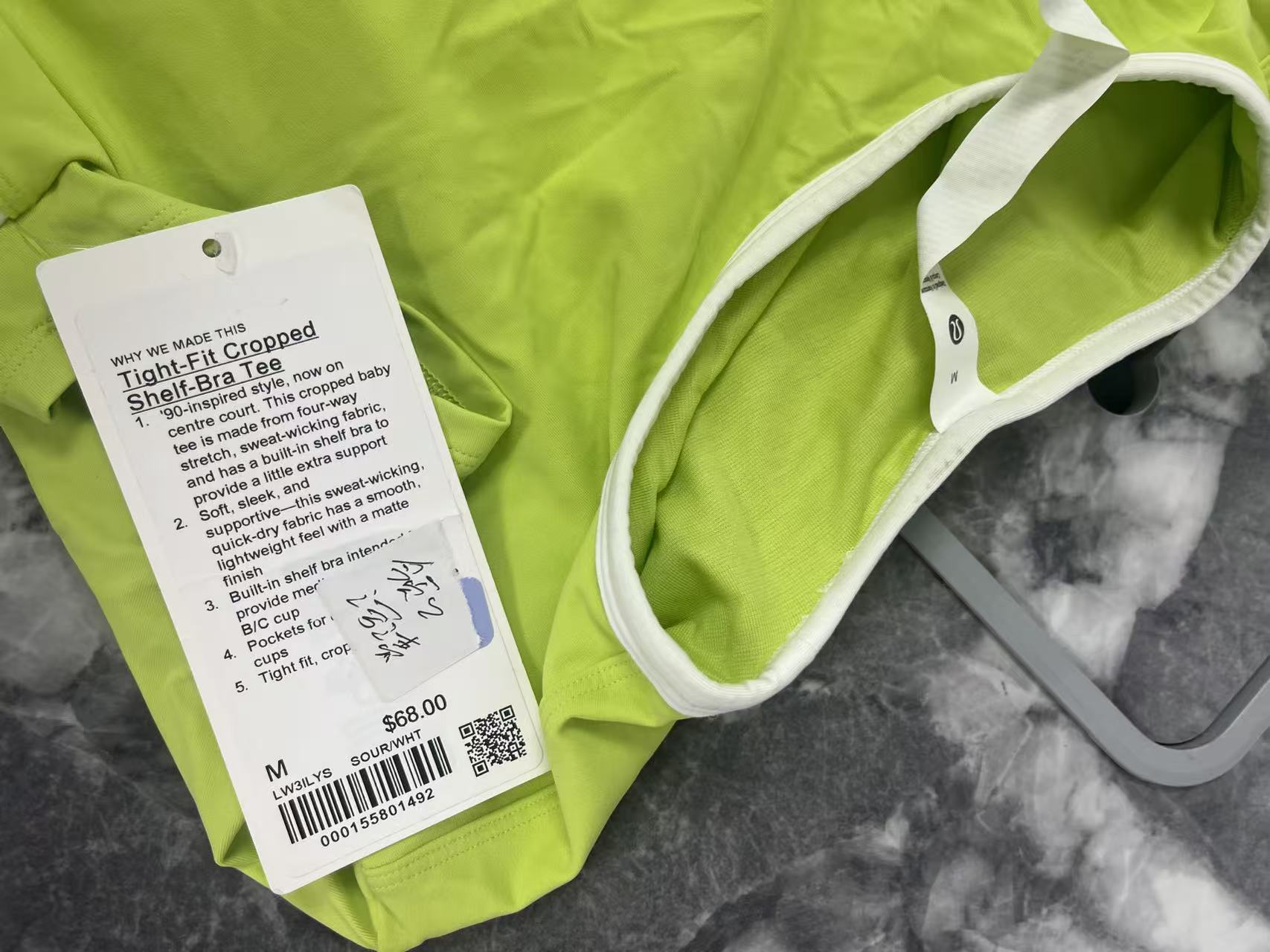 瑕疵Lululemon Tight-Fit 女夏季B/C中度支撑轻盈紧身短款运动短袖T恤
