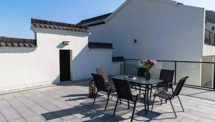 这里有独具设计感的泳池,“观”、“思”两个茶室。夏天的时候,在泳池游完泳,再泡上一杯来自径山深处的香茗,闭目养神,岂不快哉。