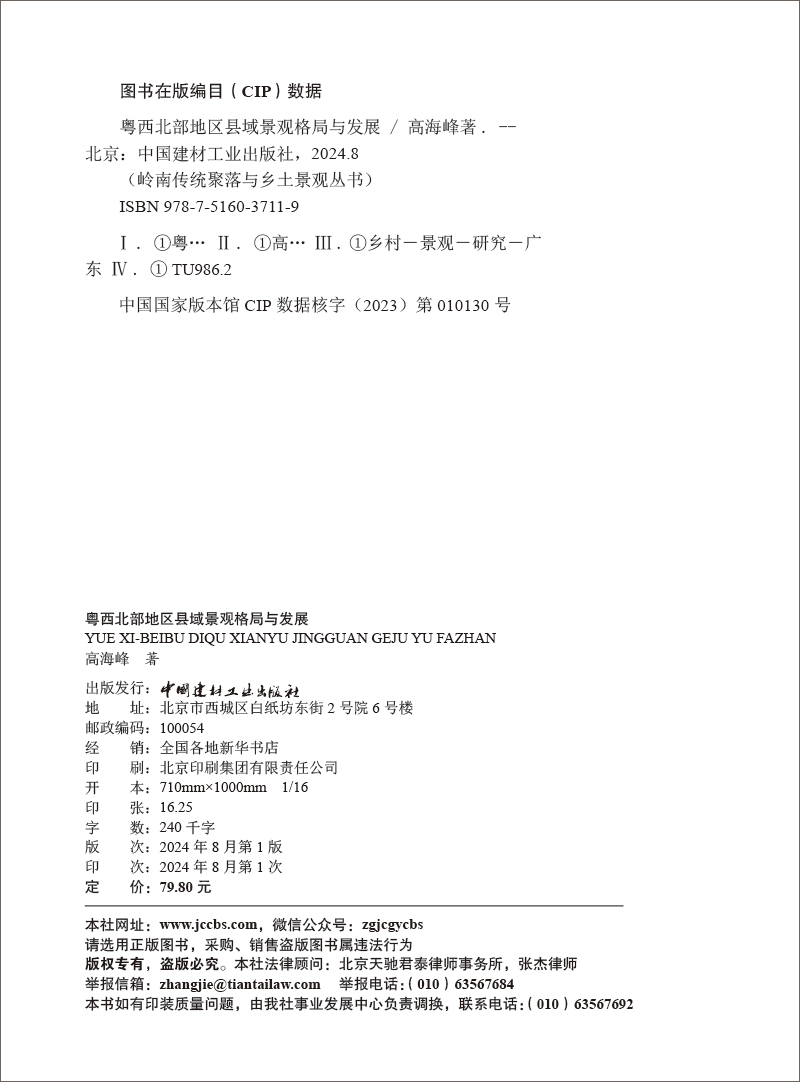 粤西北部地区县域景观格局与发展 / 高海峰著中国建材工业出版社,2024(岭南传统聚落与乡土景观丛书)ISBN 9787516037119