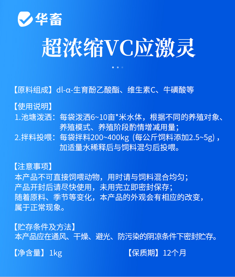 华畜超浓缩vc应激灵鱼虾蟹抗应激水产用保苗助长维生素多维应激宝