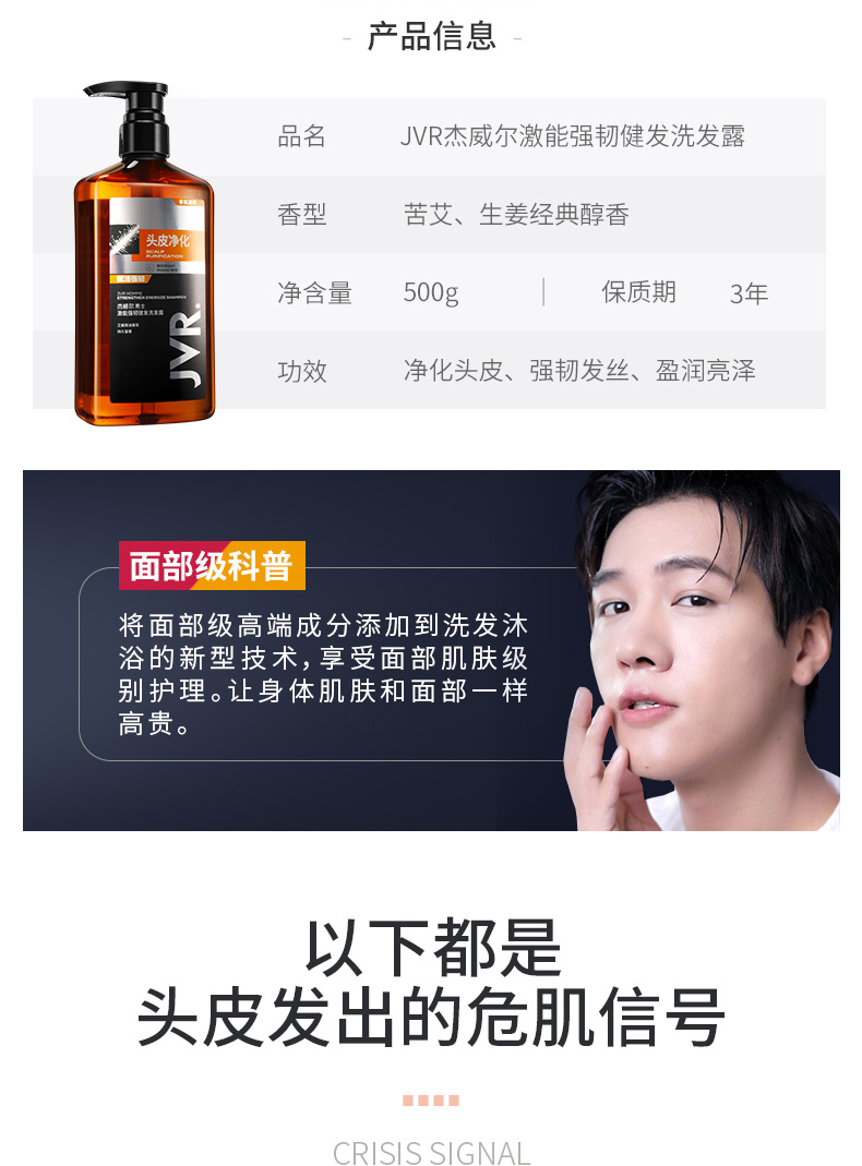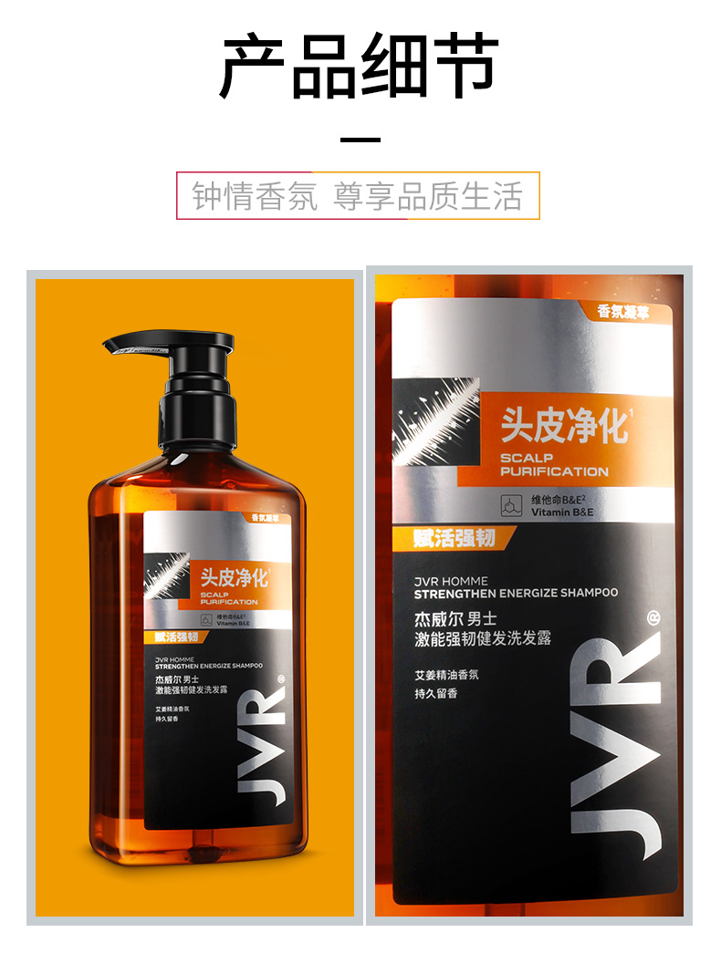 杰威尔男士激能强韧健发洗发露控油蓬松洗发水夏季清爽洗头液