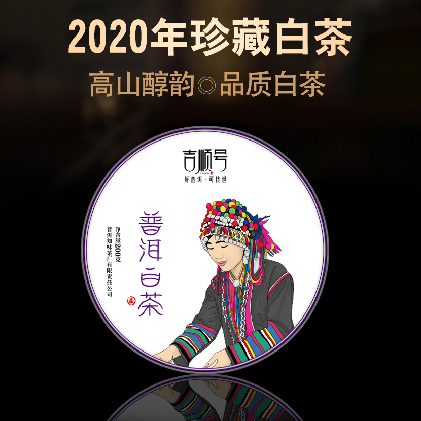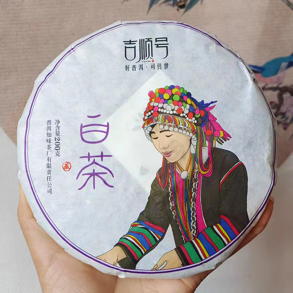 吉顺号大叶老白茶清甜鲜爽 2020年哈尼白茶-景迈古树生晒白茶饼200g