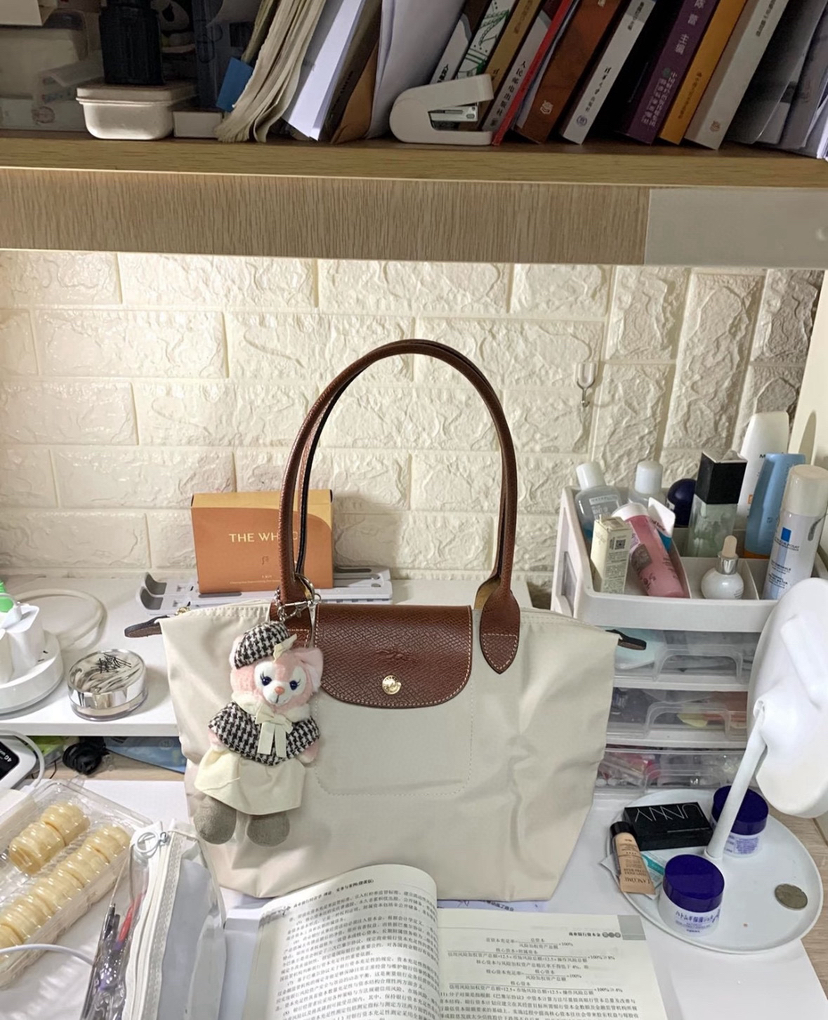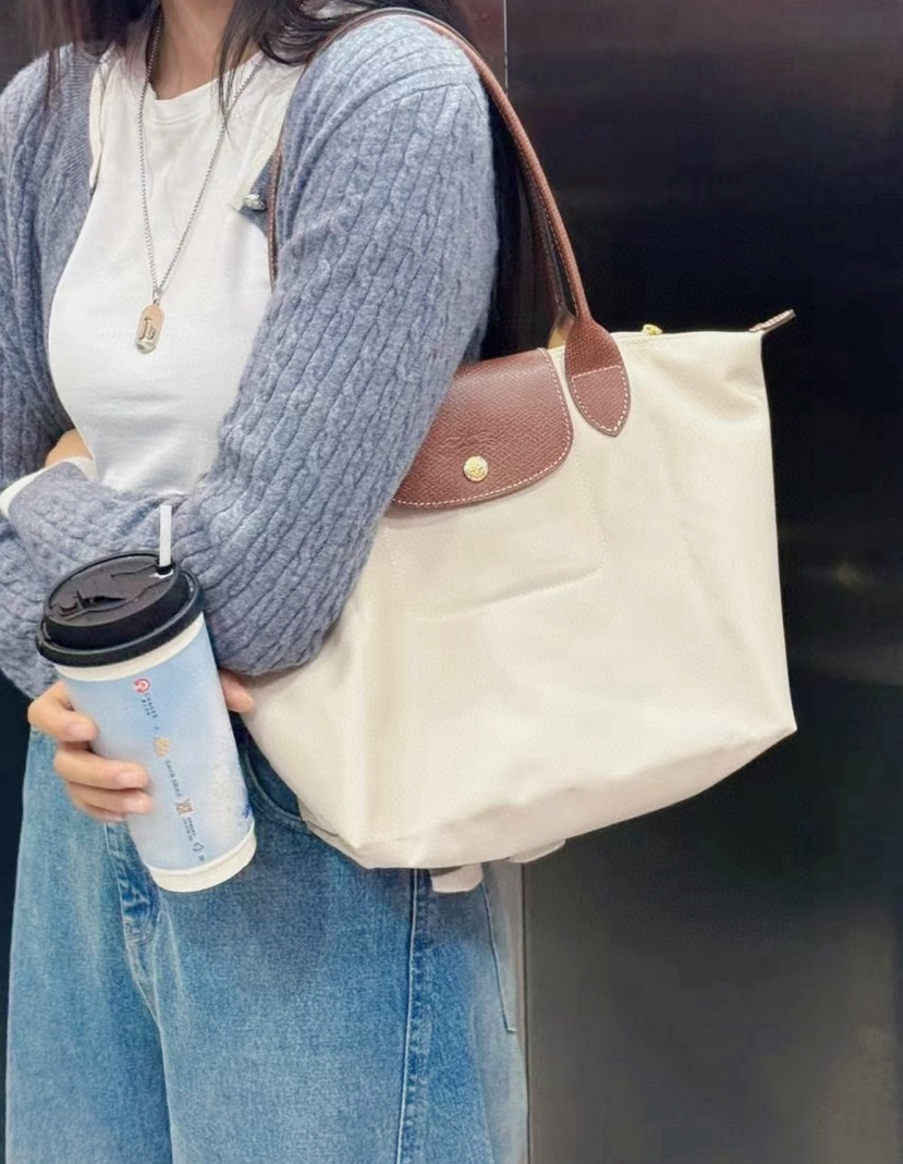 在途国现Longchamp龙骧纸白中号长柄1060元
