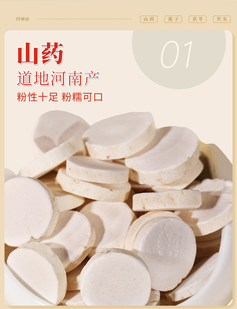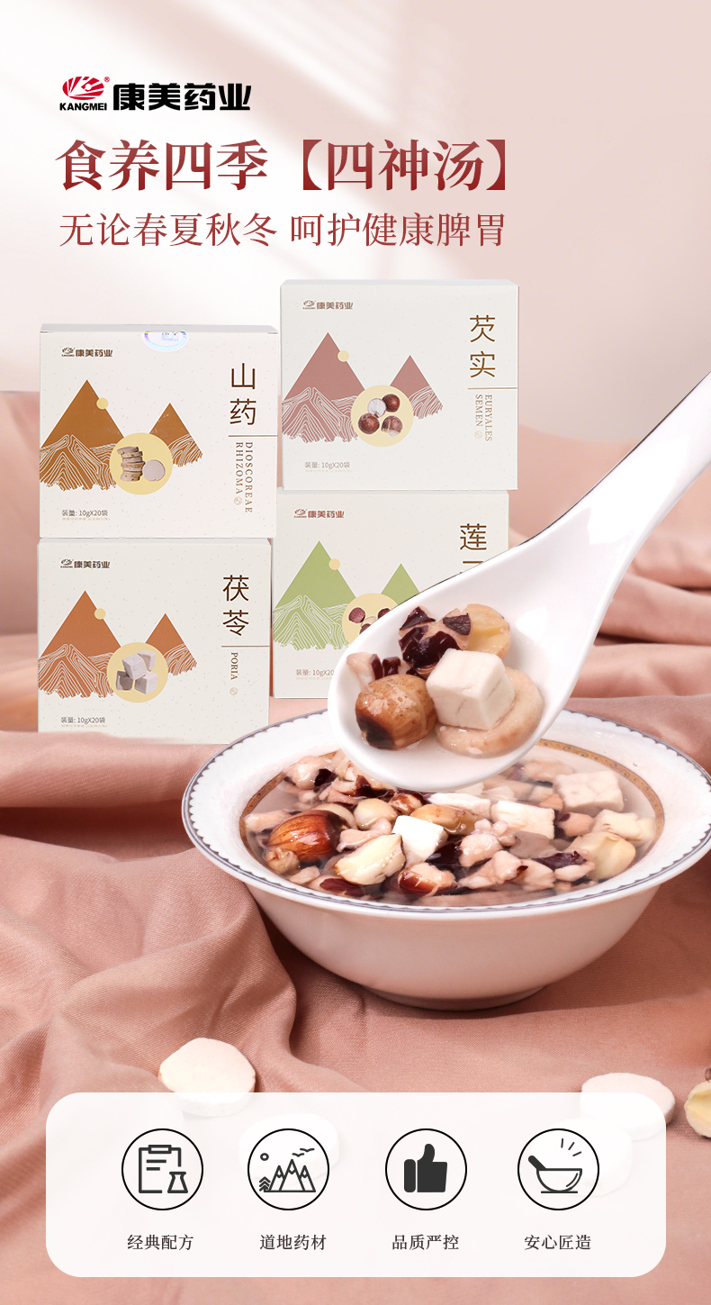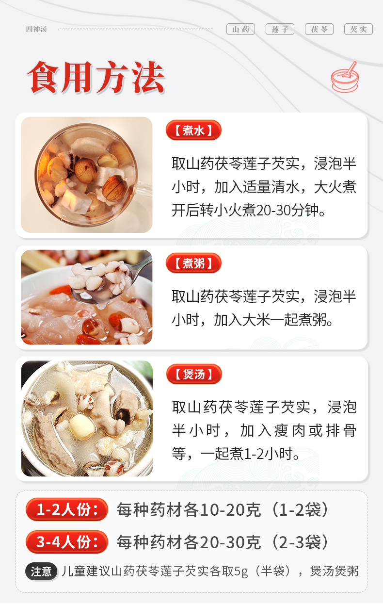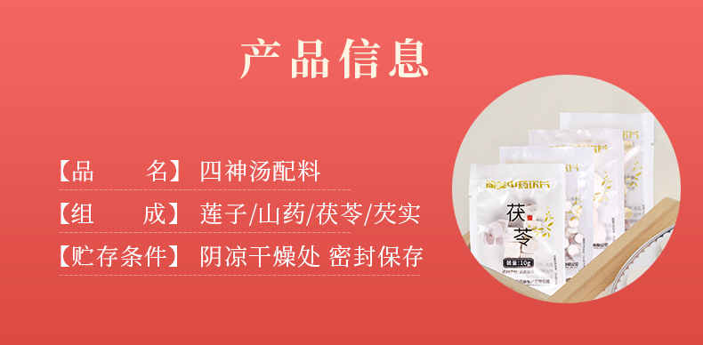 康美药业四神汤原材料 御宝堂系列茯苓/山药/莲子/芡实10g*20袋/盒 药食同源康美中药饮片 独立小包装