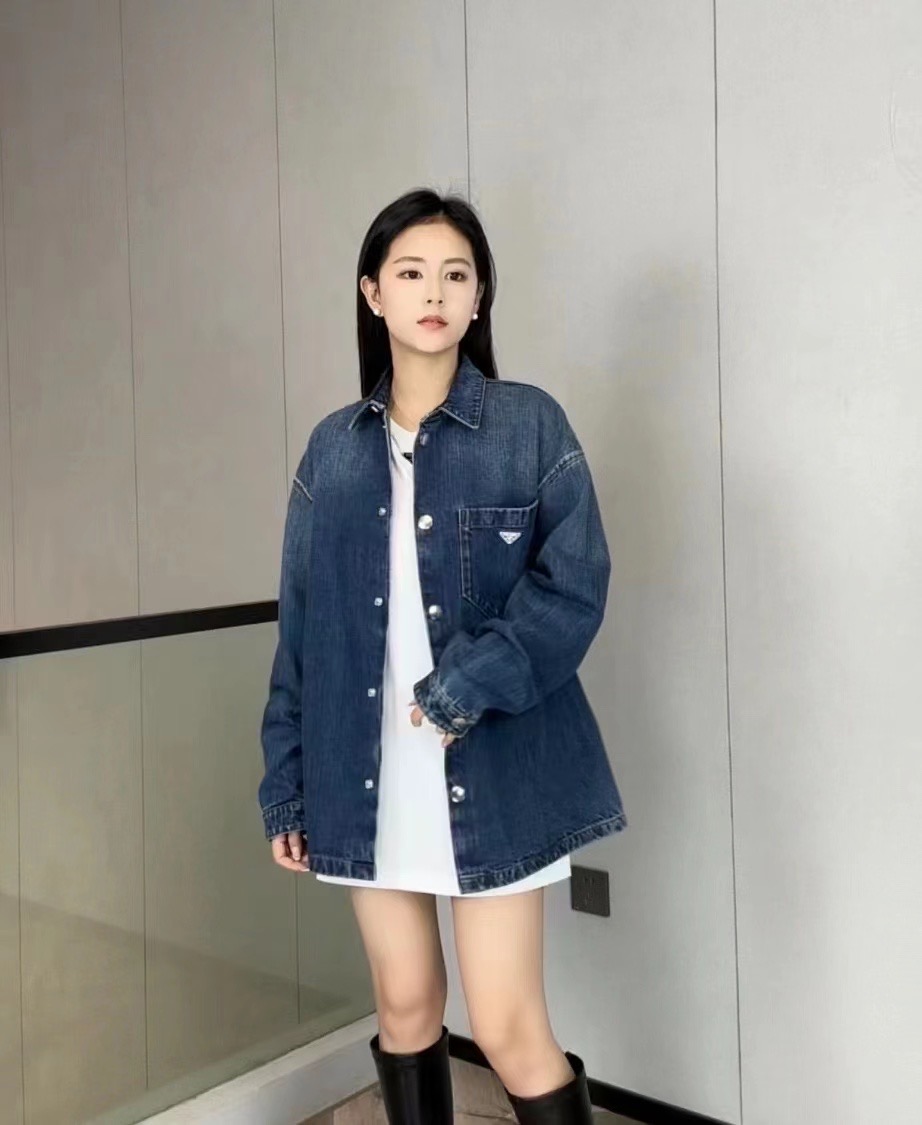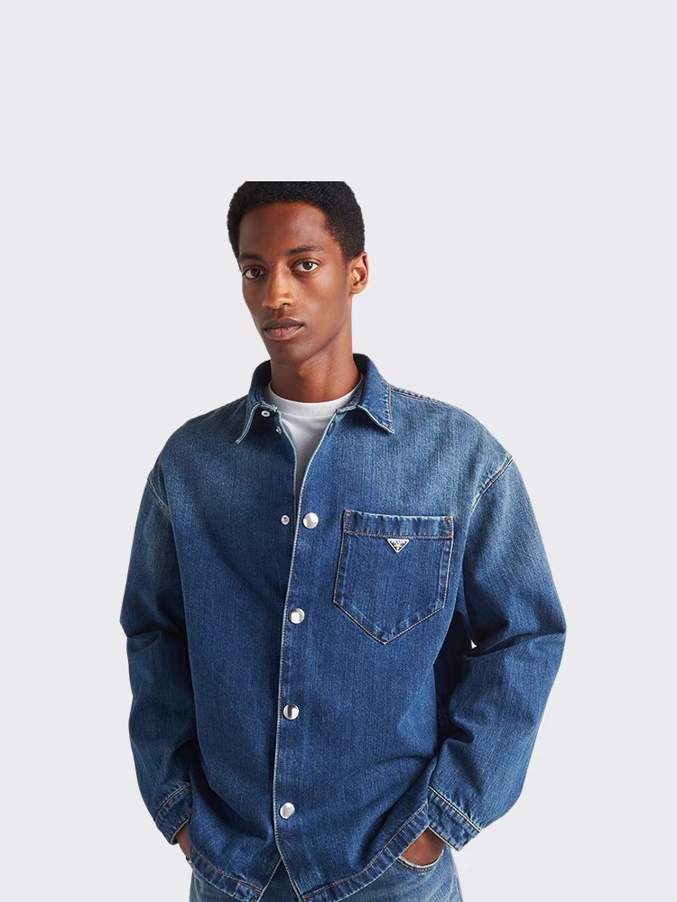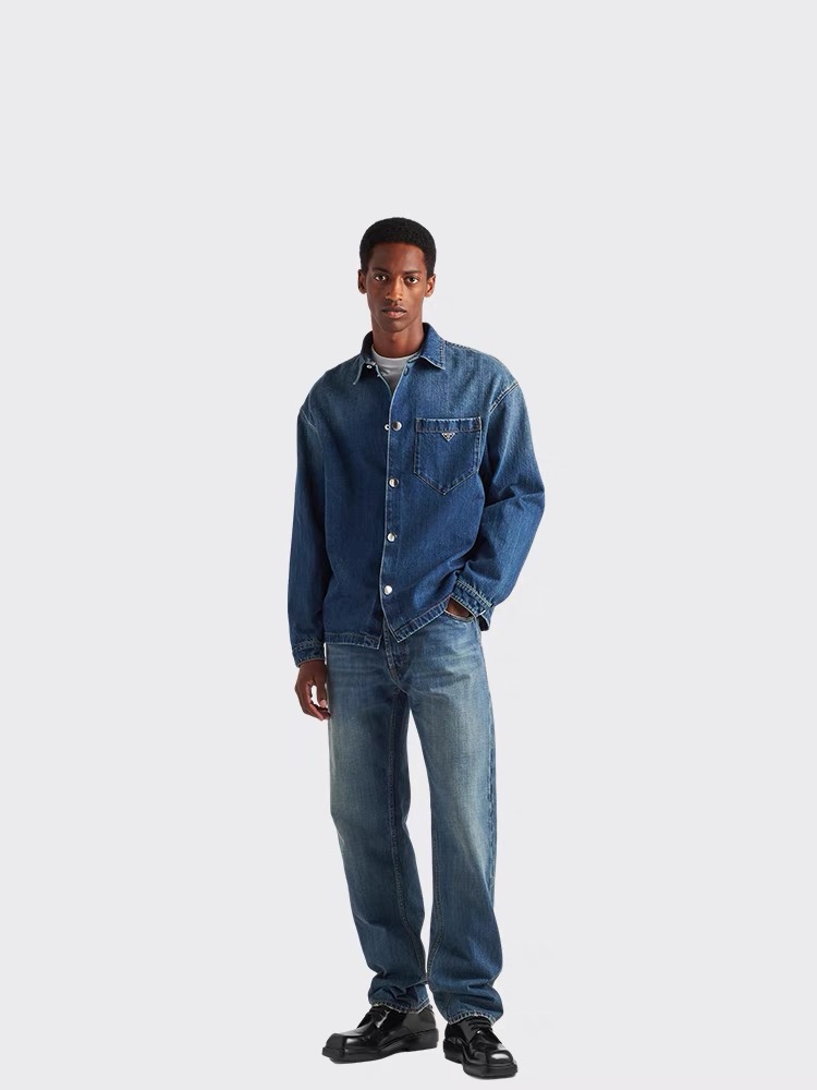 P.R.D 24新款 水洗磨白宽松牛仔衬衫外套