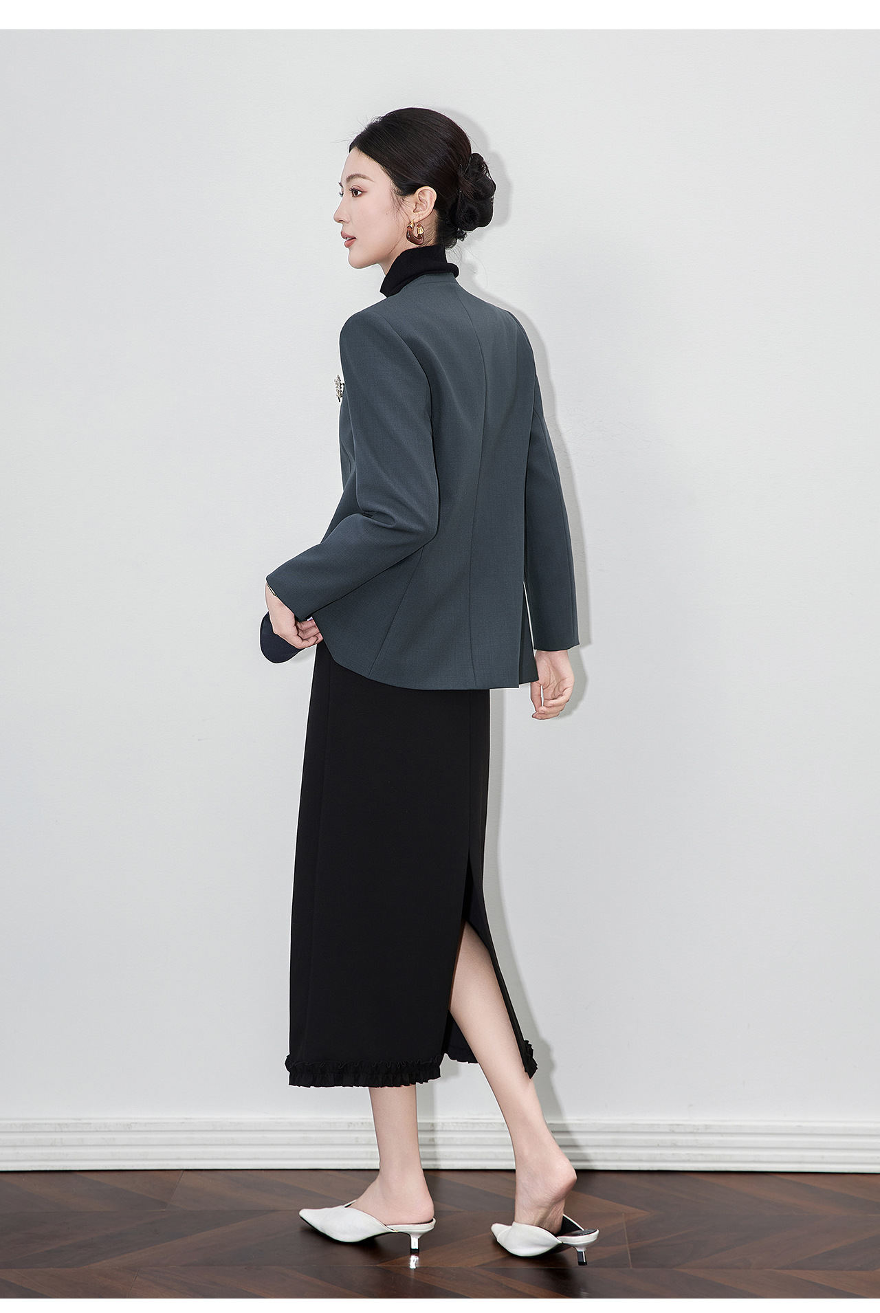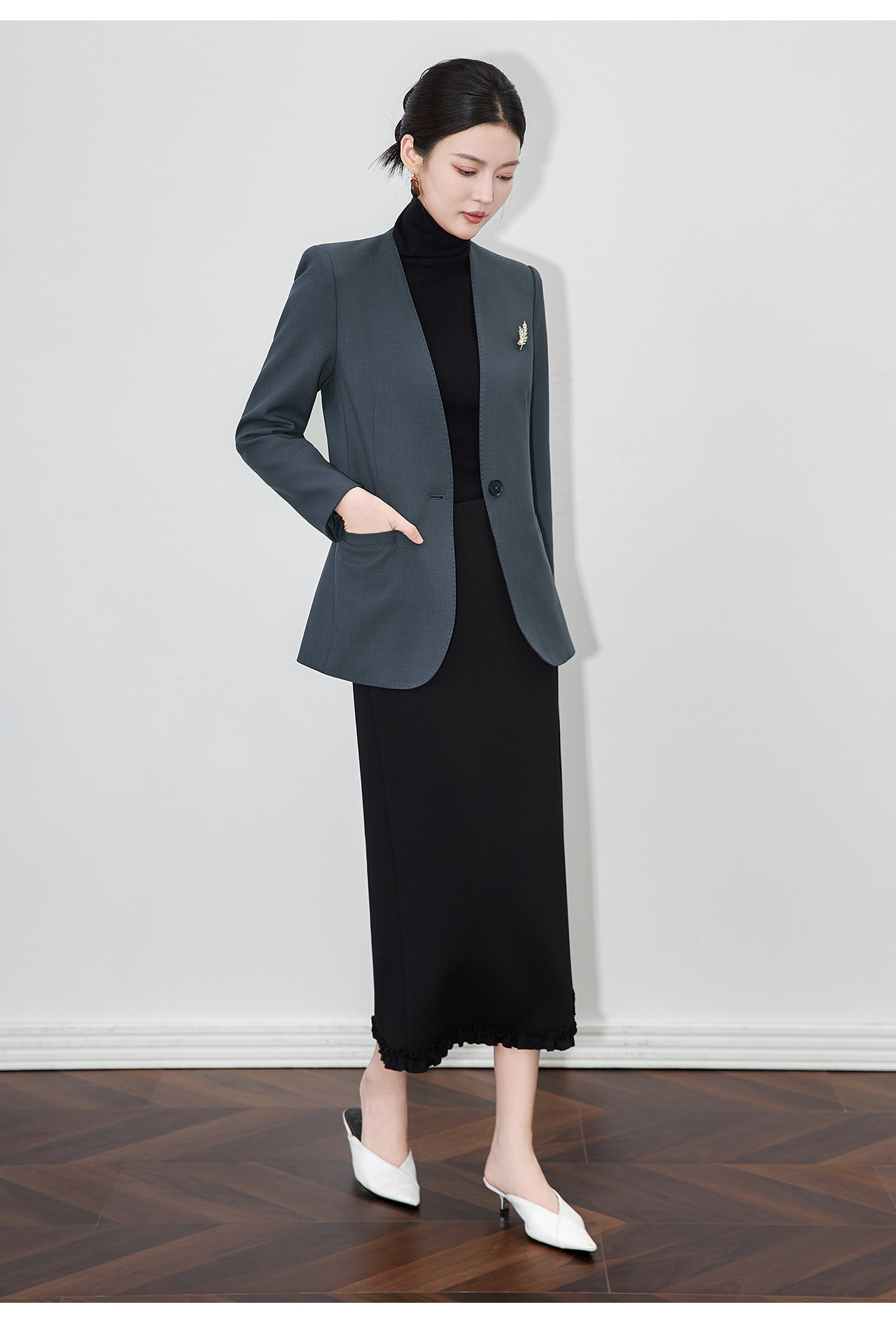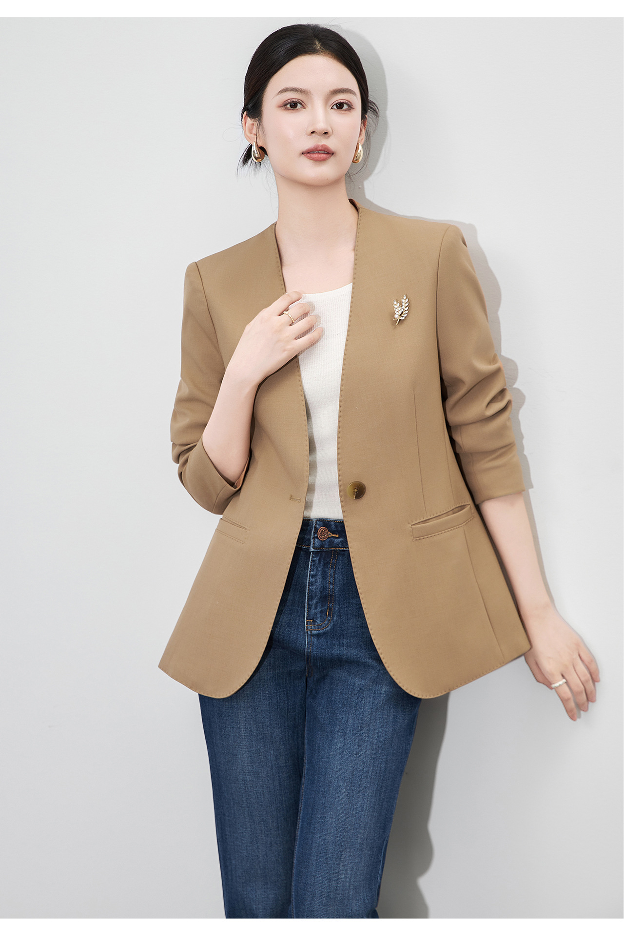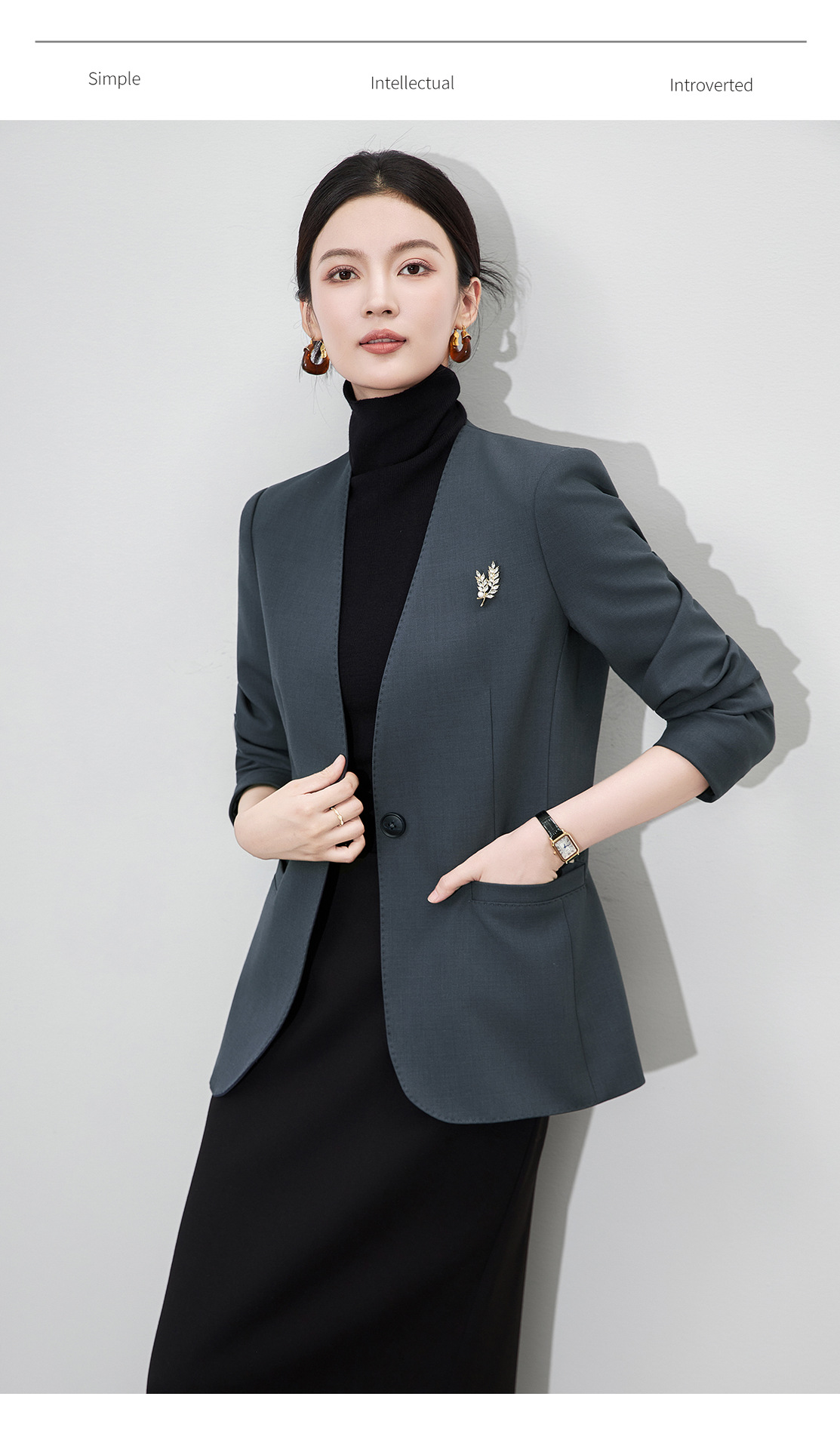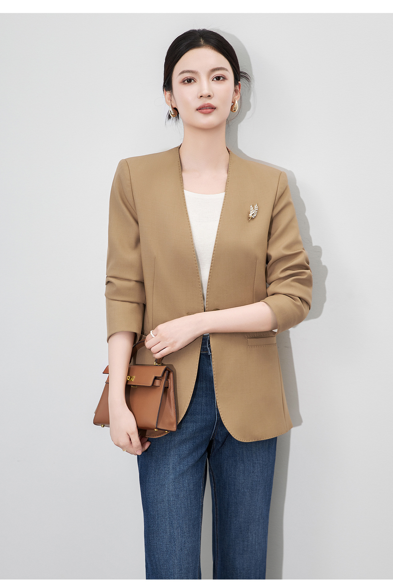 WL 2512705通勤正式西装外套无领重工珠边收腰显瘦西服 商品图3