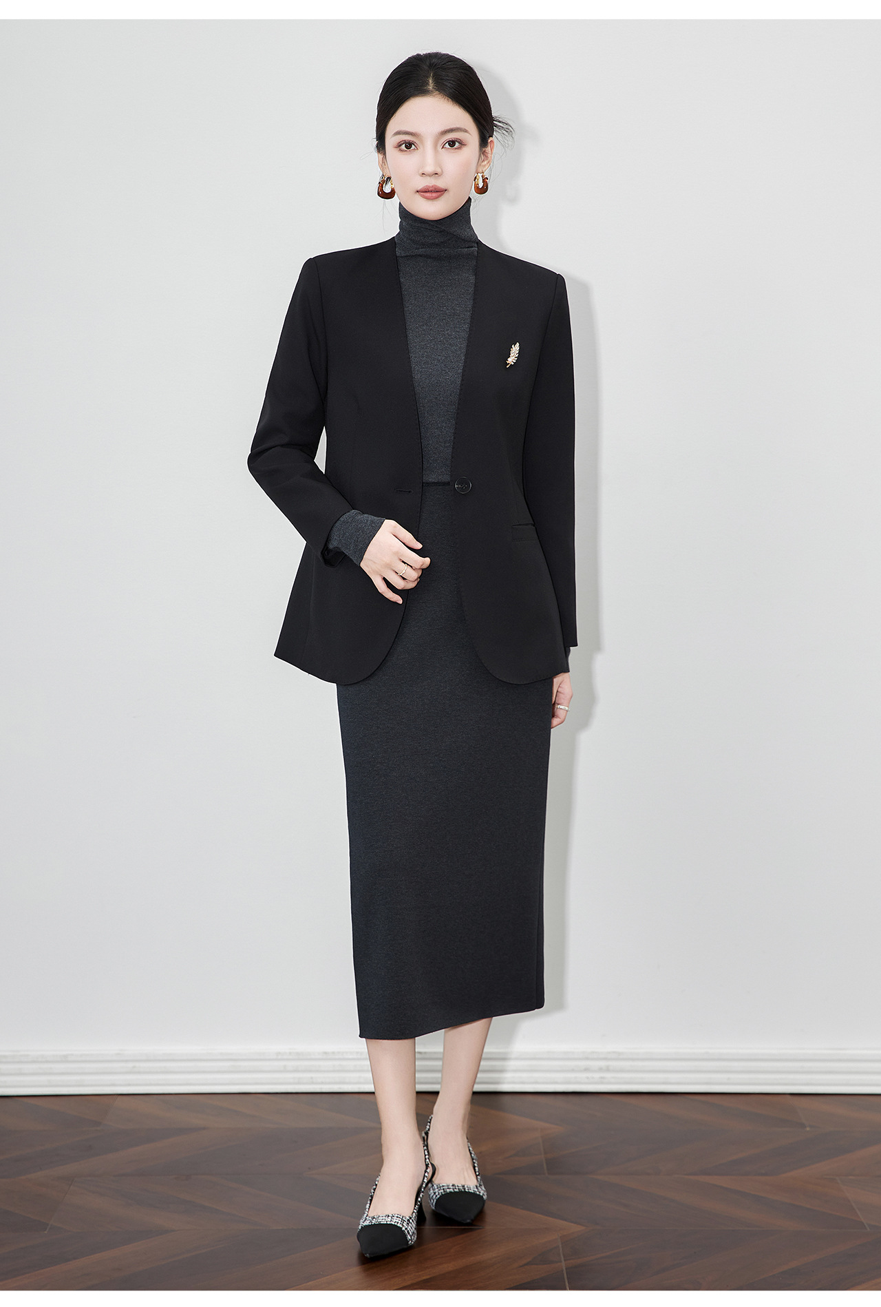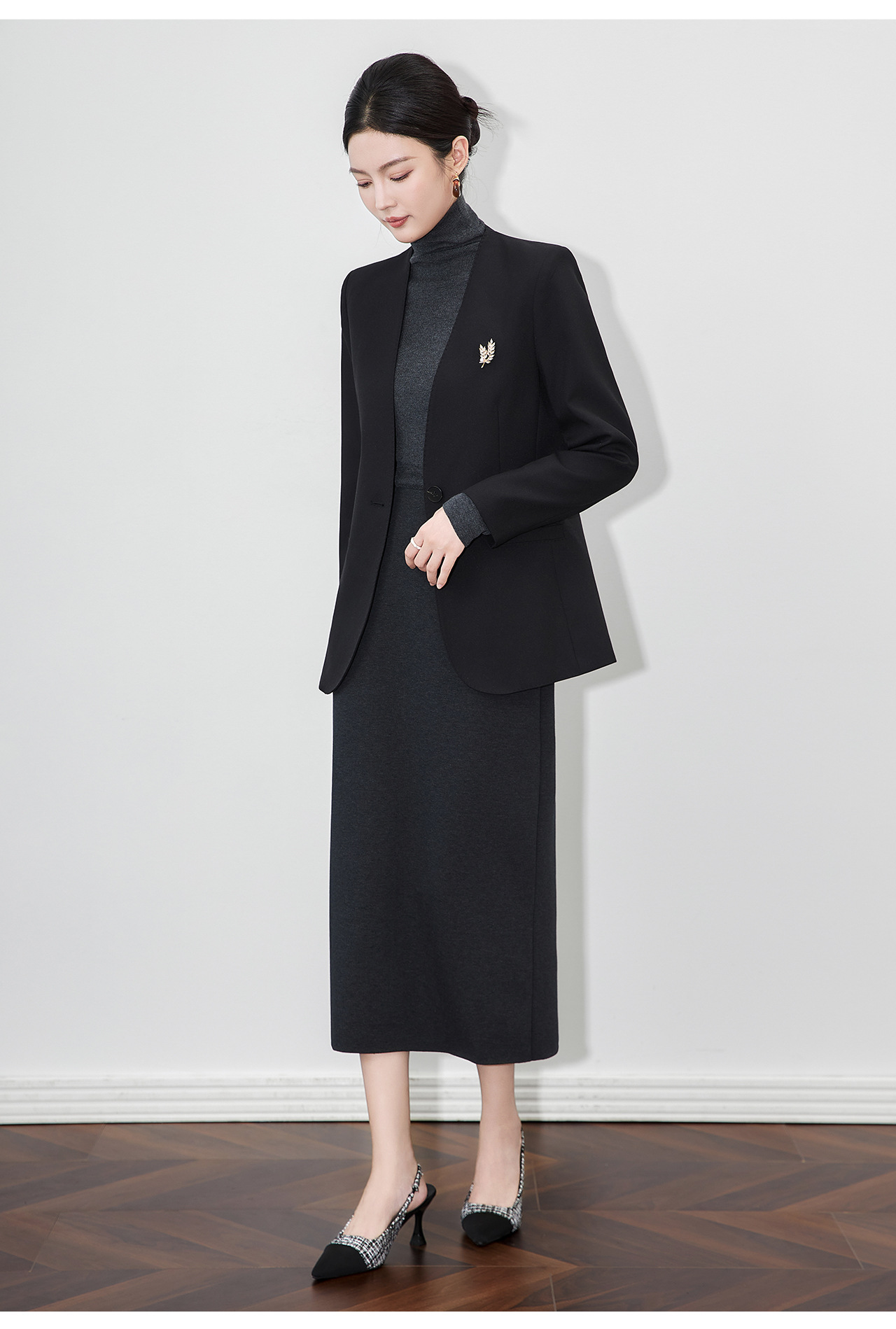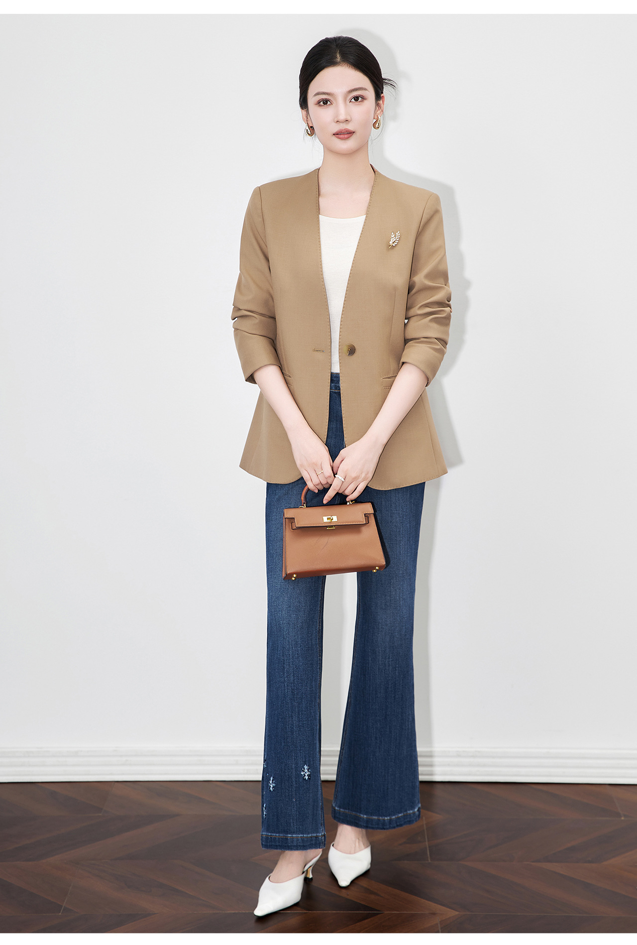WL 2512705通勤正式西装外套无领重工珠边收腰显瘦西服