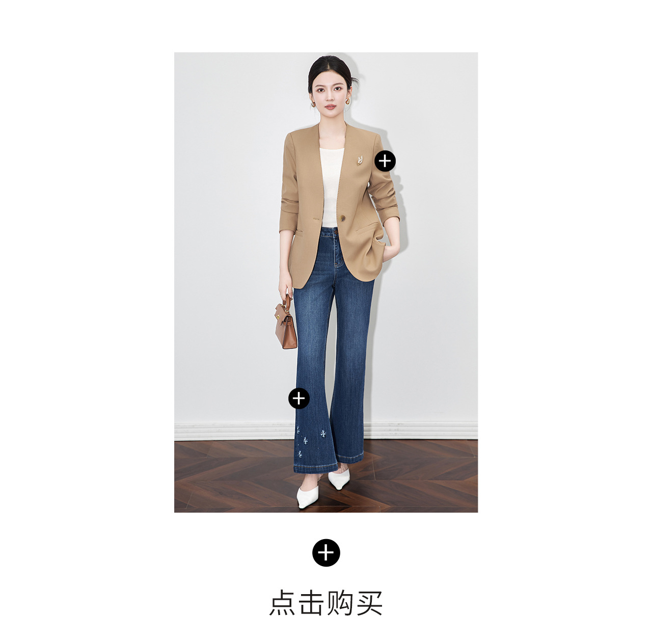 WL 2512705通勤正式西装外套无领重工珠边收腰显瘦西服 商品图1