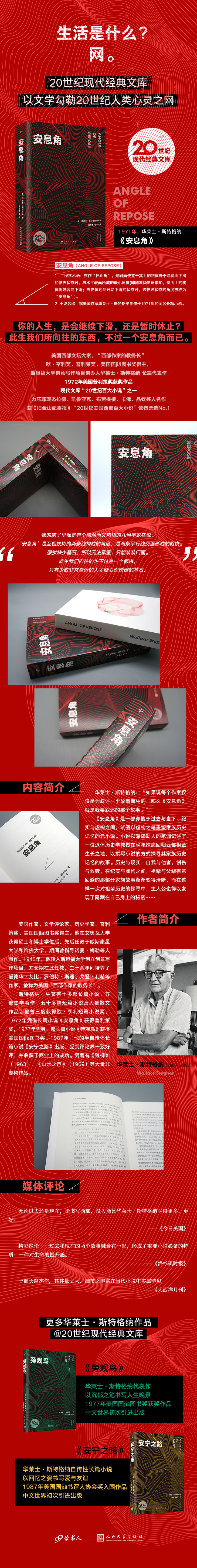 如果说每个作家仅仅是为叙述一个故事而生的,那么《安息角》就是我要叙述的那个故事。——华莱士•斯特格纳