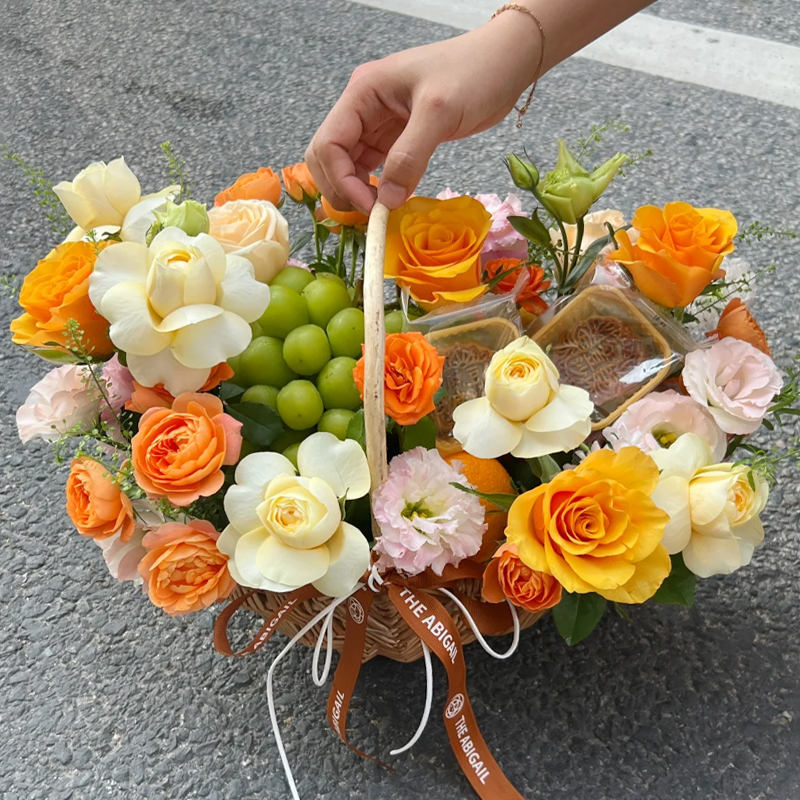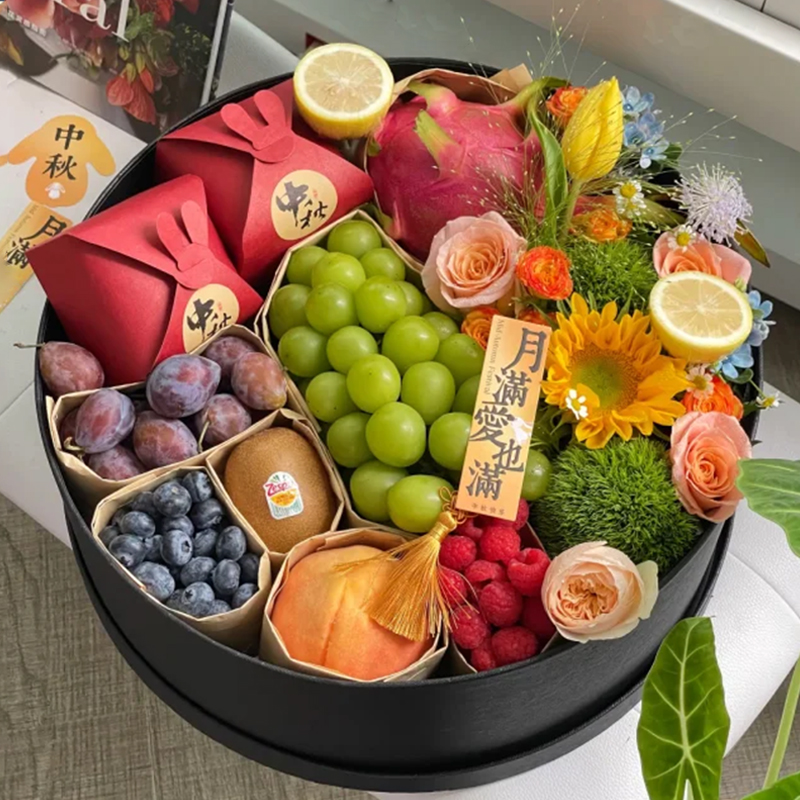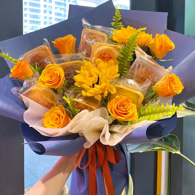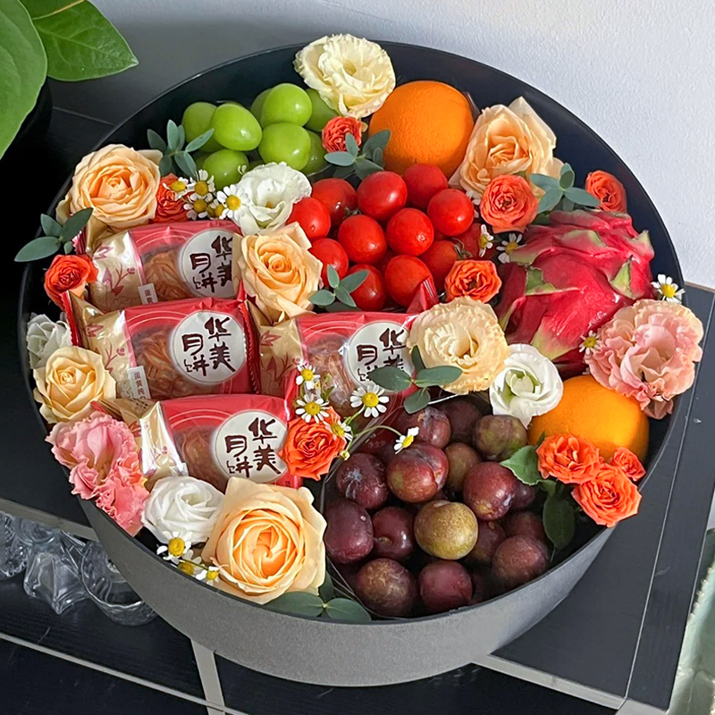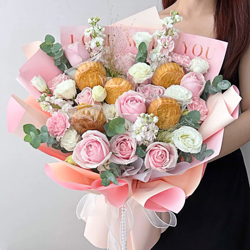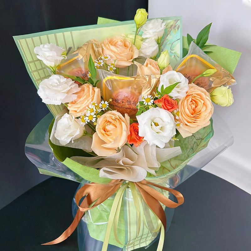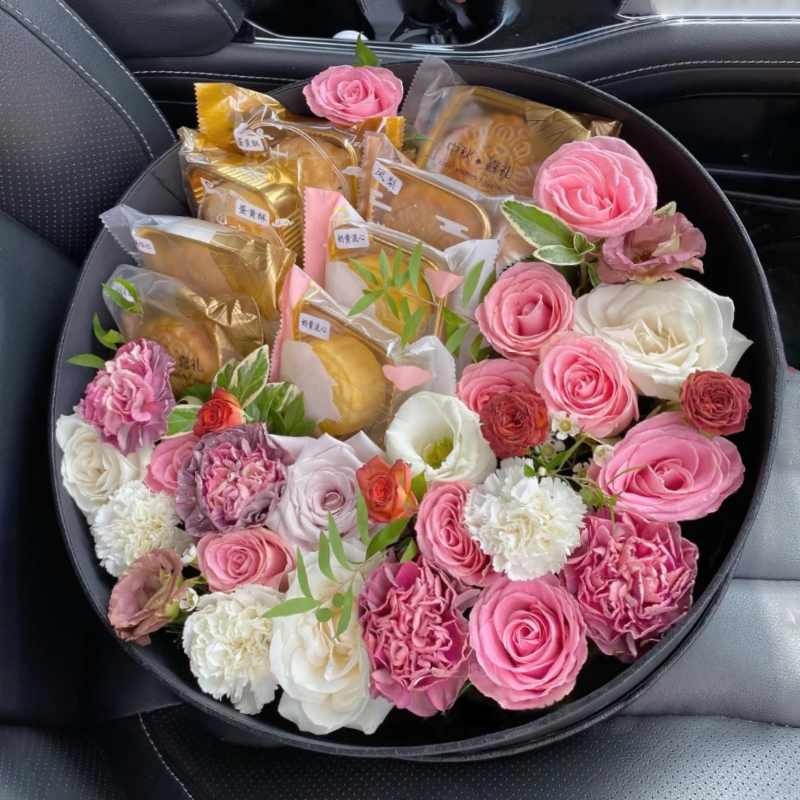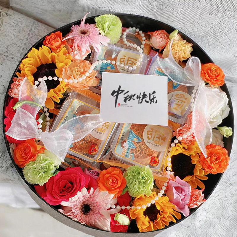 中秋节月饼玫瑰鲜花花束礼盒上海鲜花速递同城北京上海广州深圳送长辈女友对象美好祝福