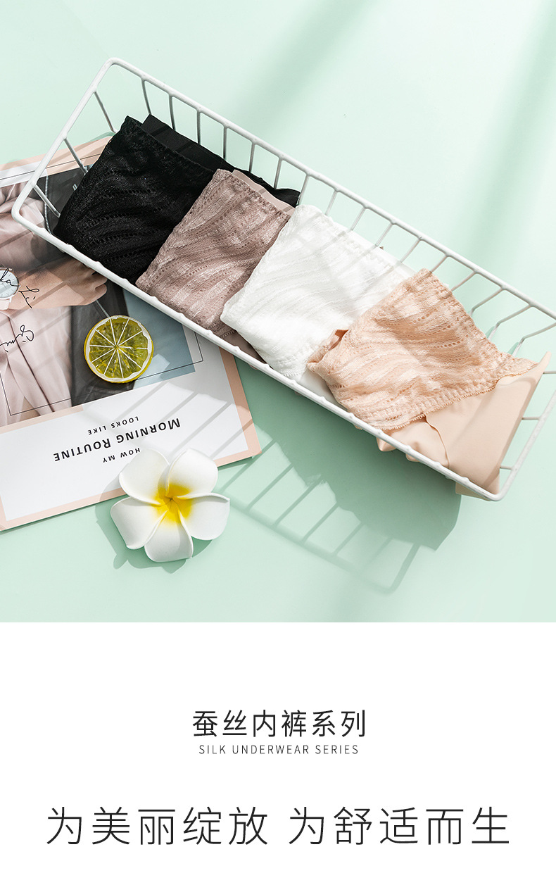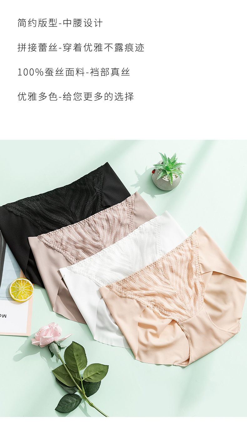 【洛诗琳老顾客福利款】【3条99元 5条149元】真丝桑蚕丝内档❗❗桑蚕丝蕾丝拼接高弹力真丝三角无痕透气内裤(贴身衣物不支持退换 )65131