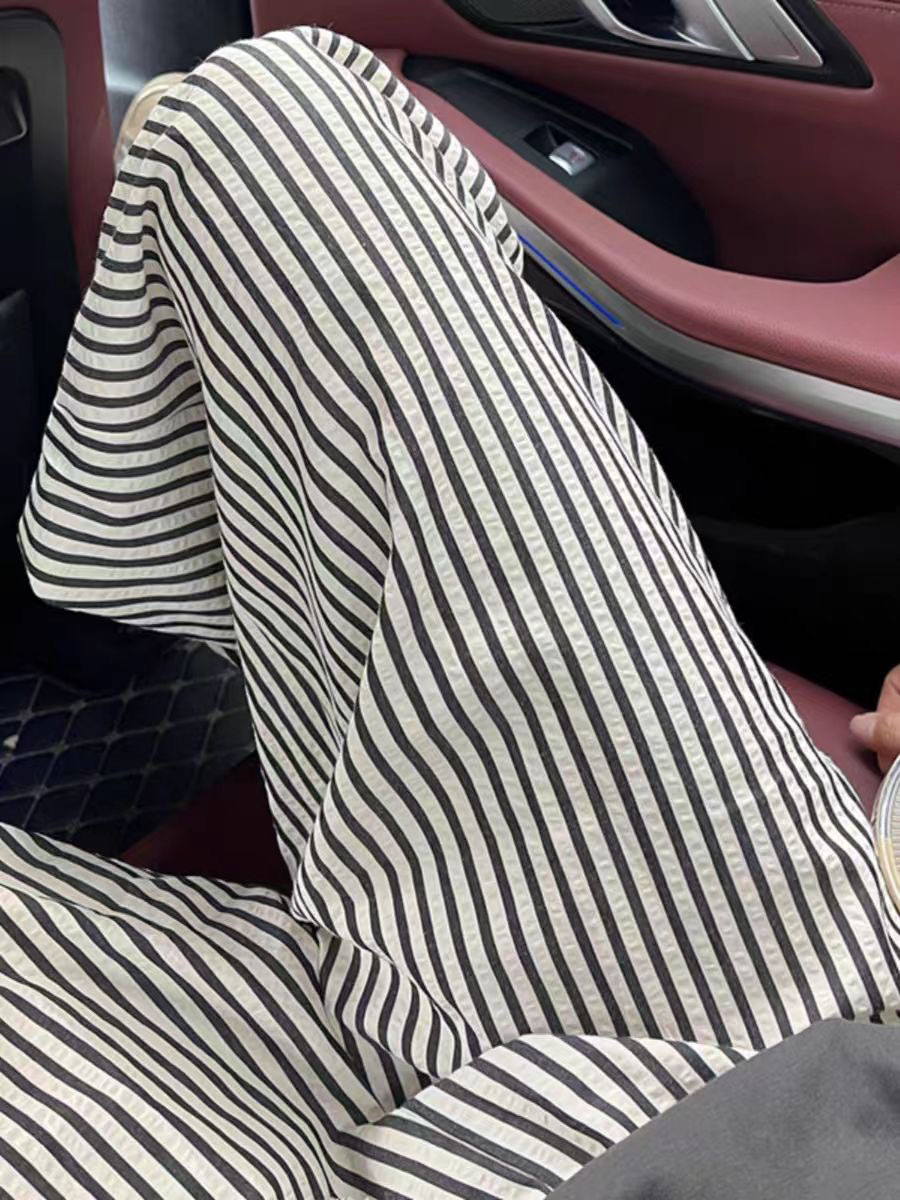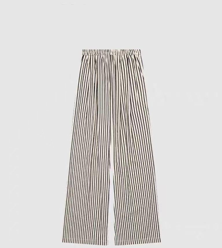 洛诗琳04732春夏新款高腰显瘦垂感复古条纹百搭休闲长裤女25280