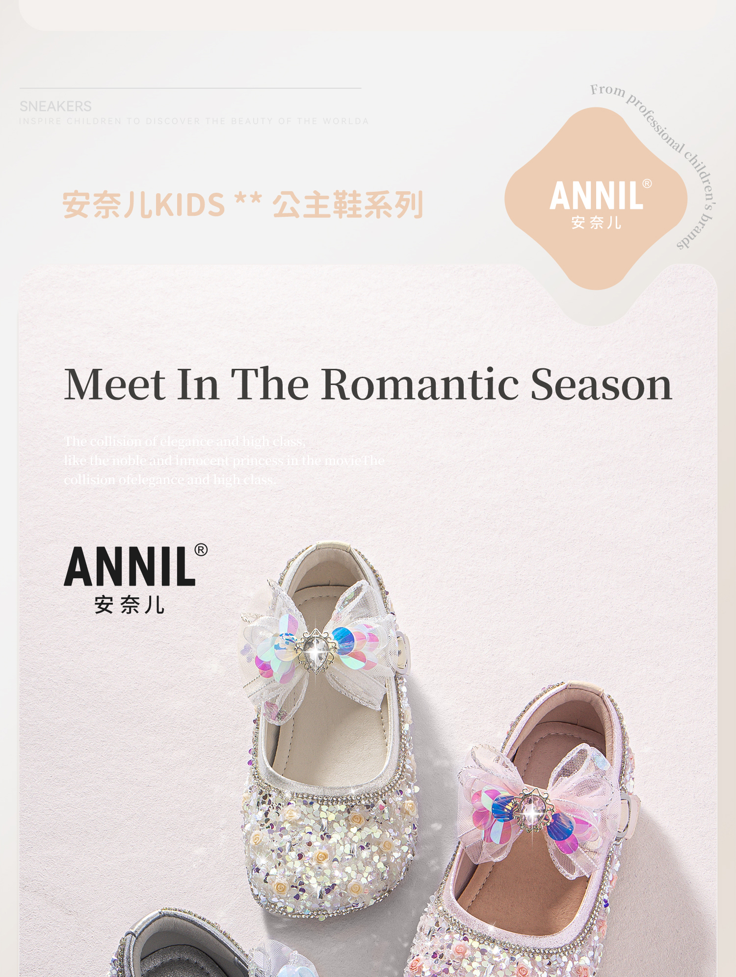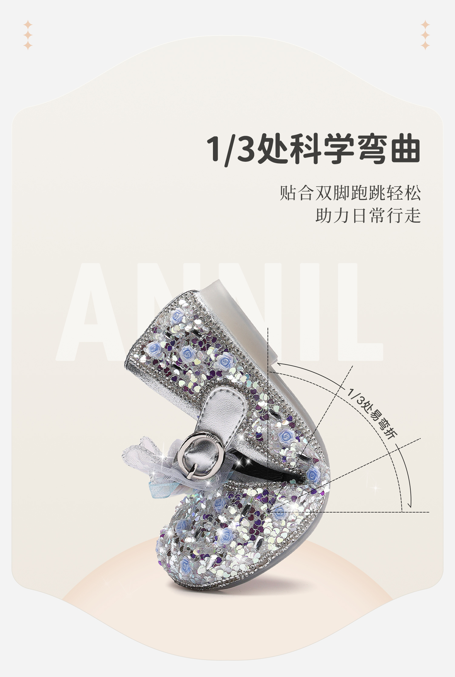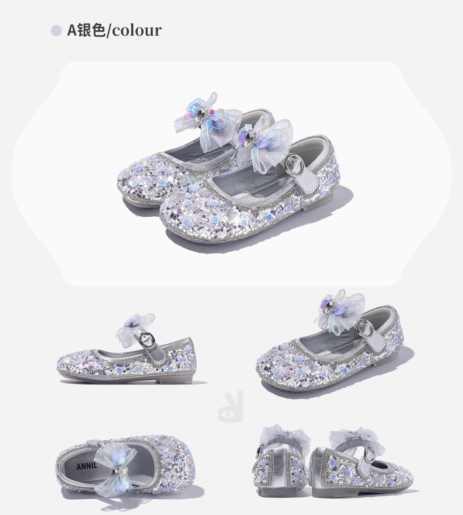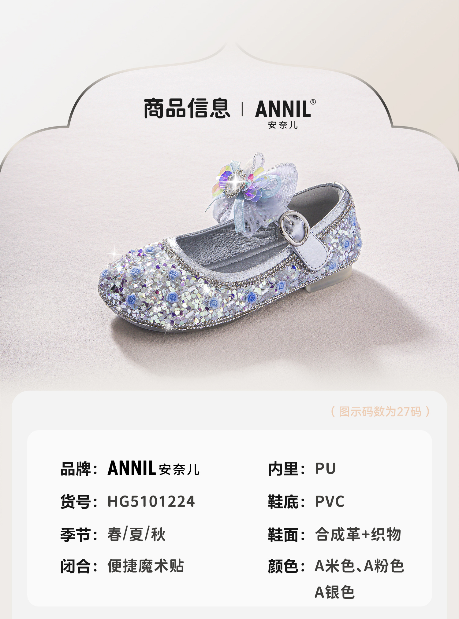 ANNIL/安奈儿2025春季新款女宝宝公主鞋软底女童皮鞋儿童单鞋闪亮水晶鞋HG5101224