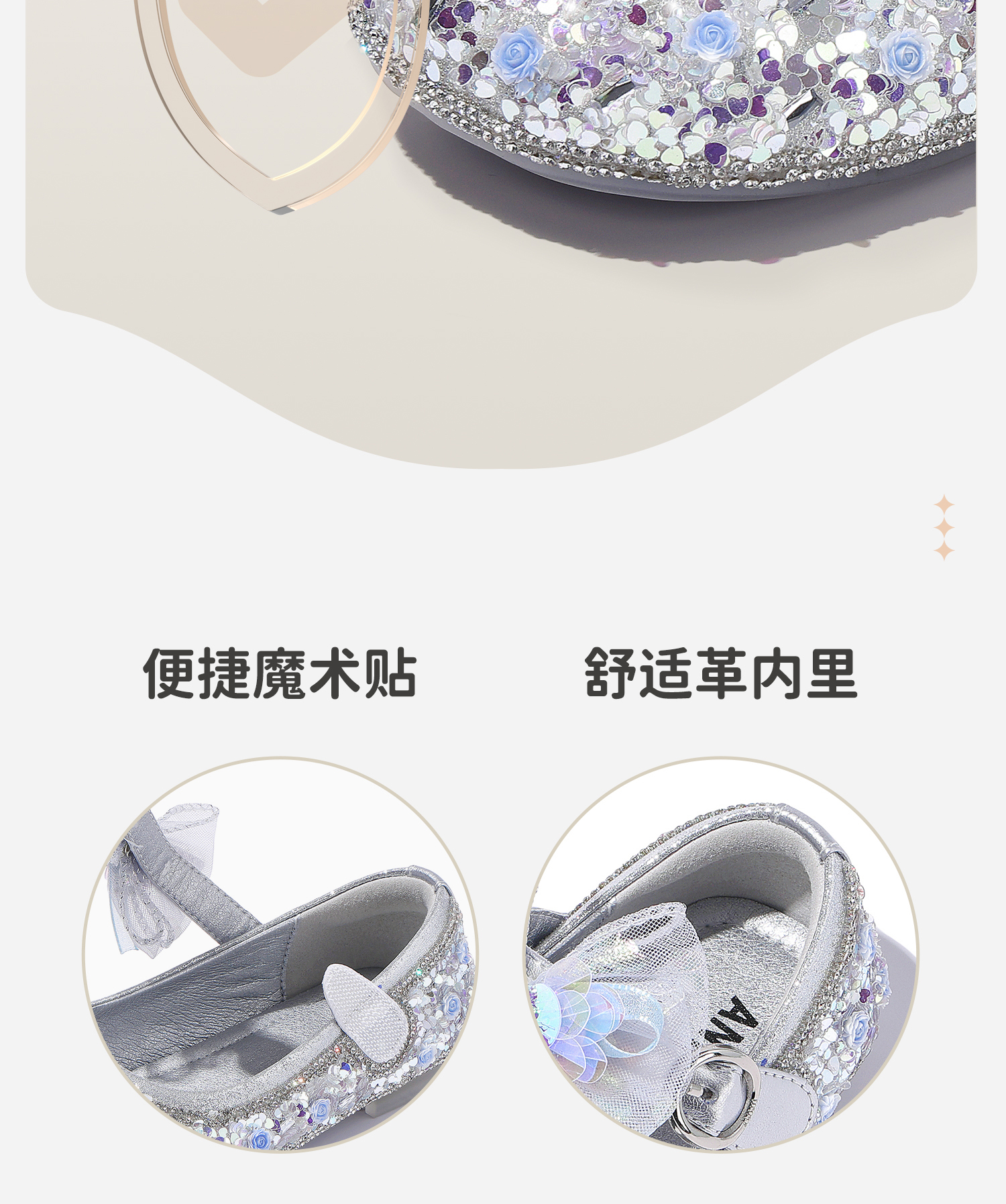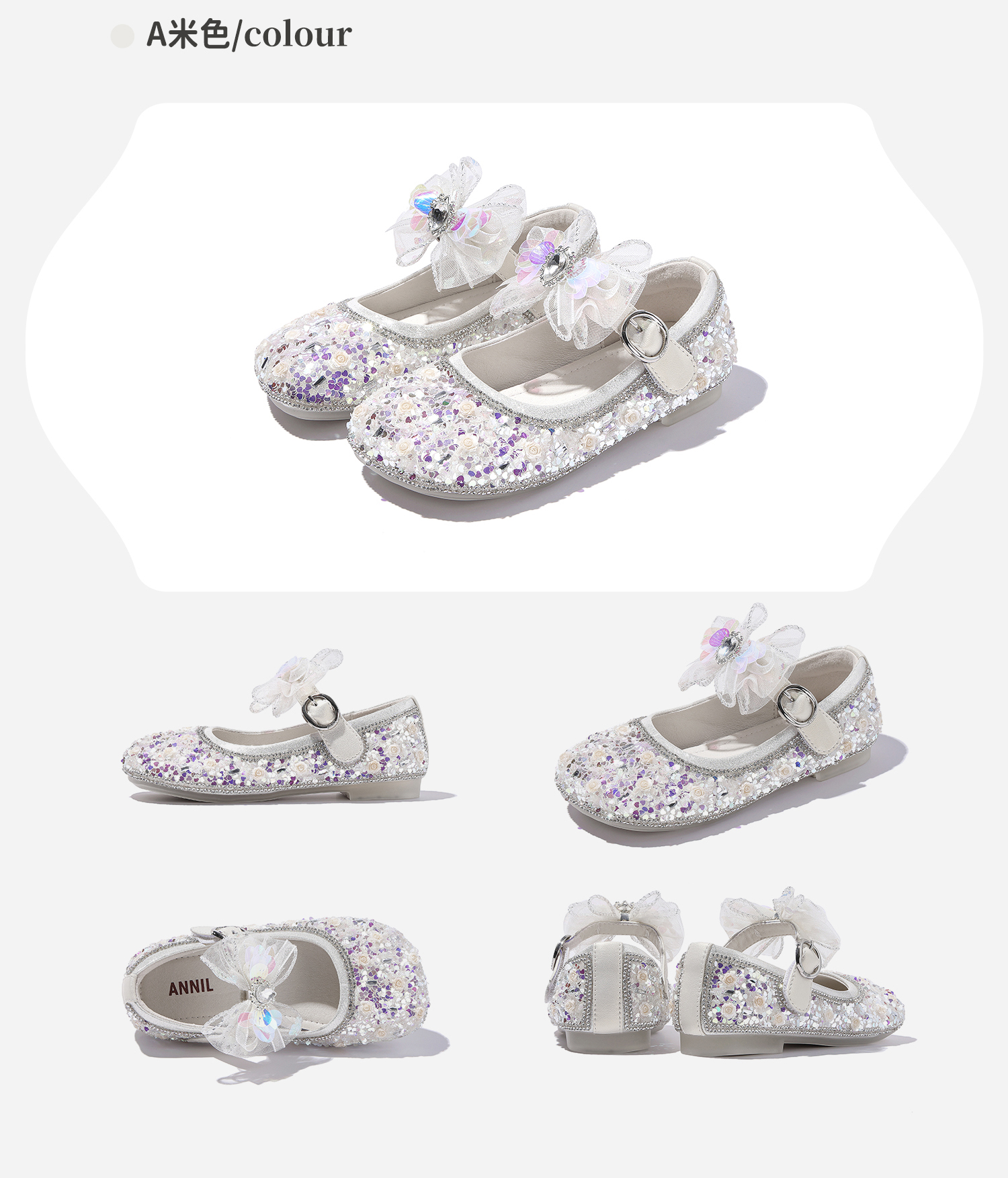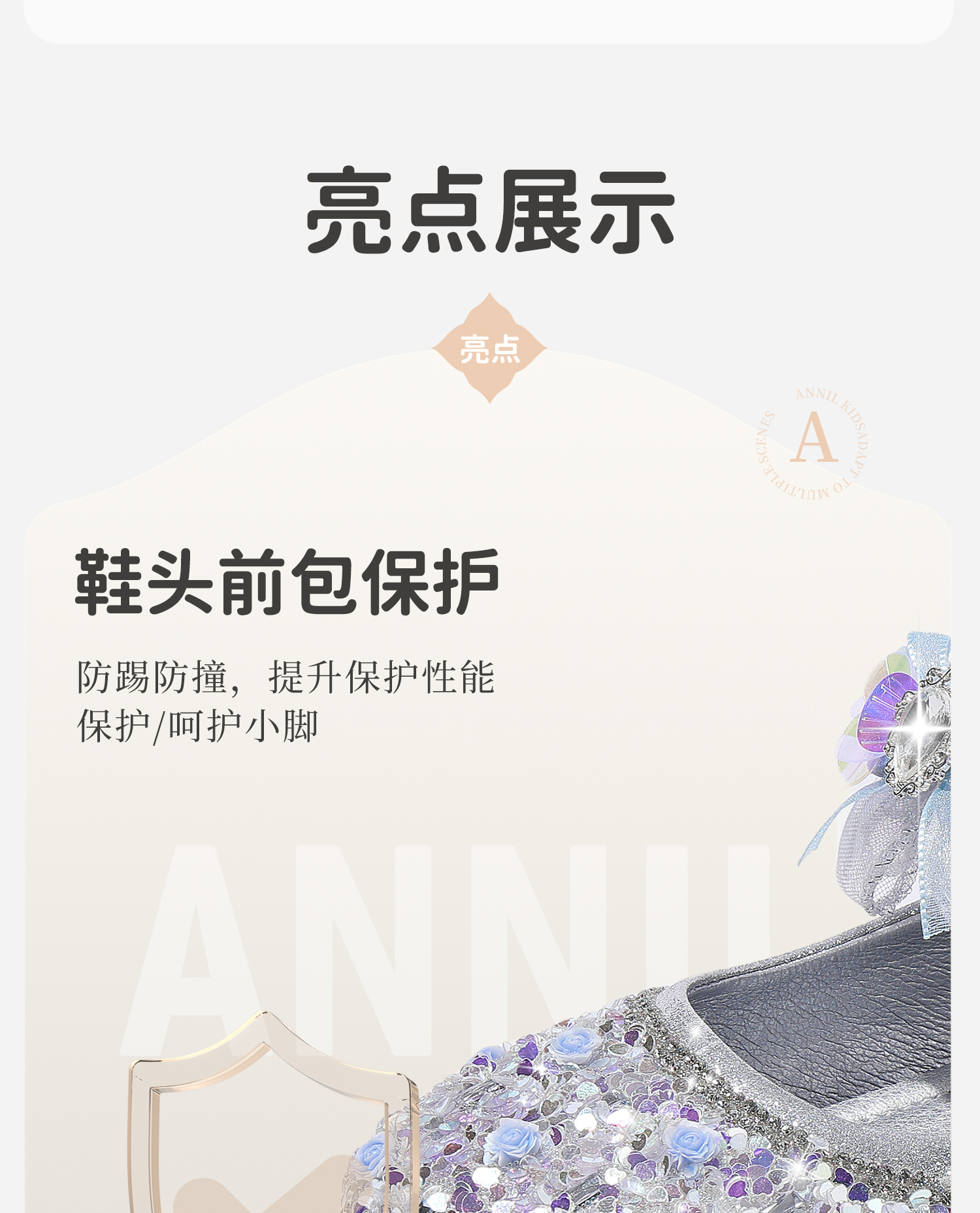 ANNIL/安奈儿2025春季新款女宝宝公主鞋软底女童皮鞋儿童单鞋闪亮水晶鞋HG5101224