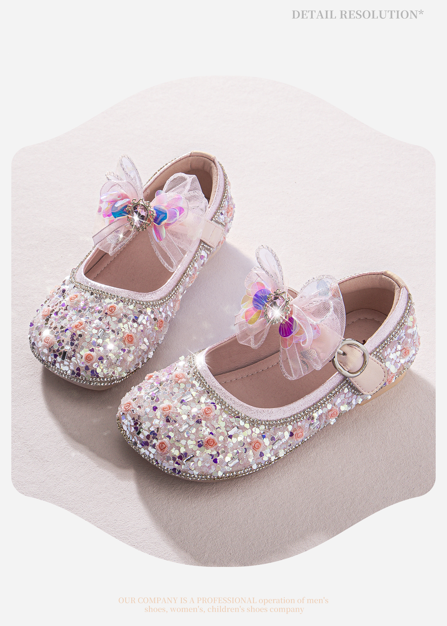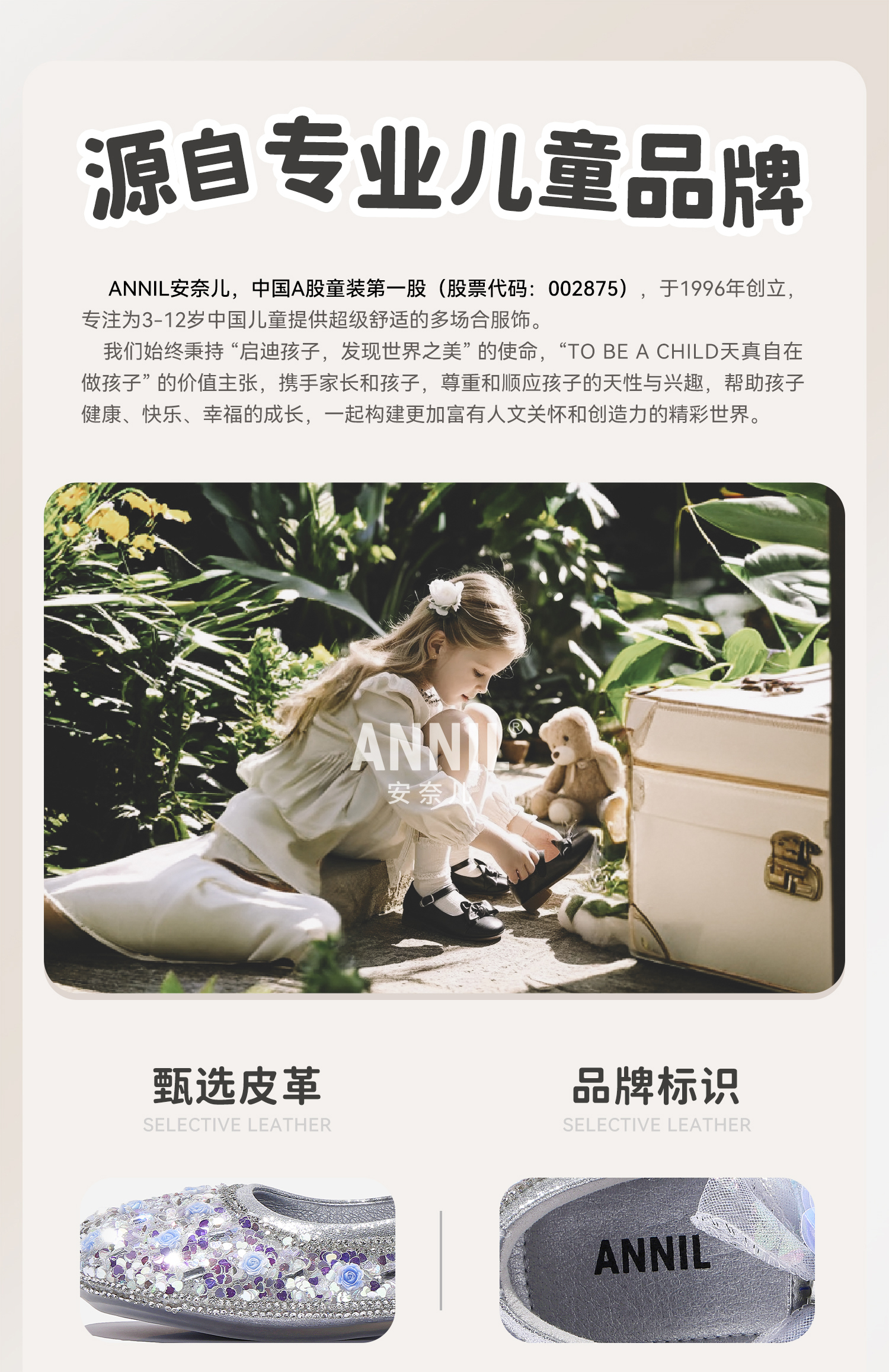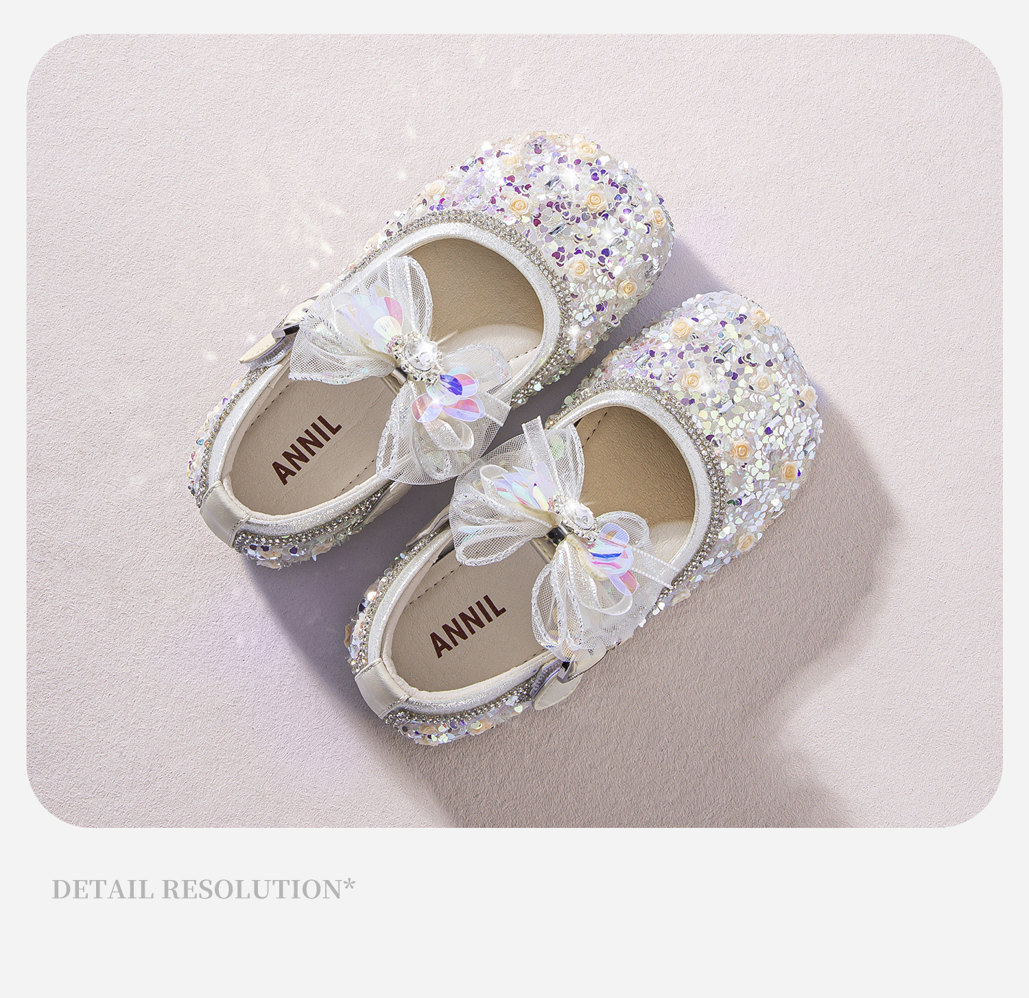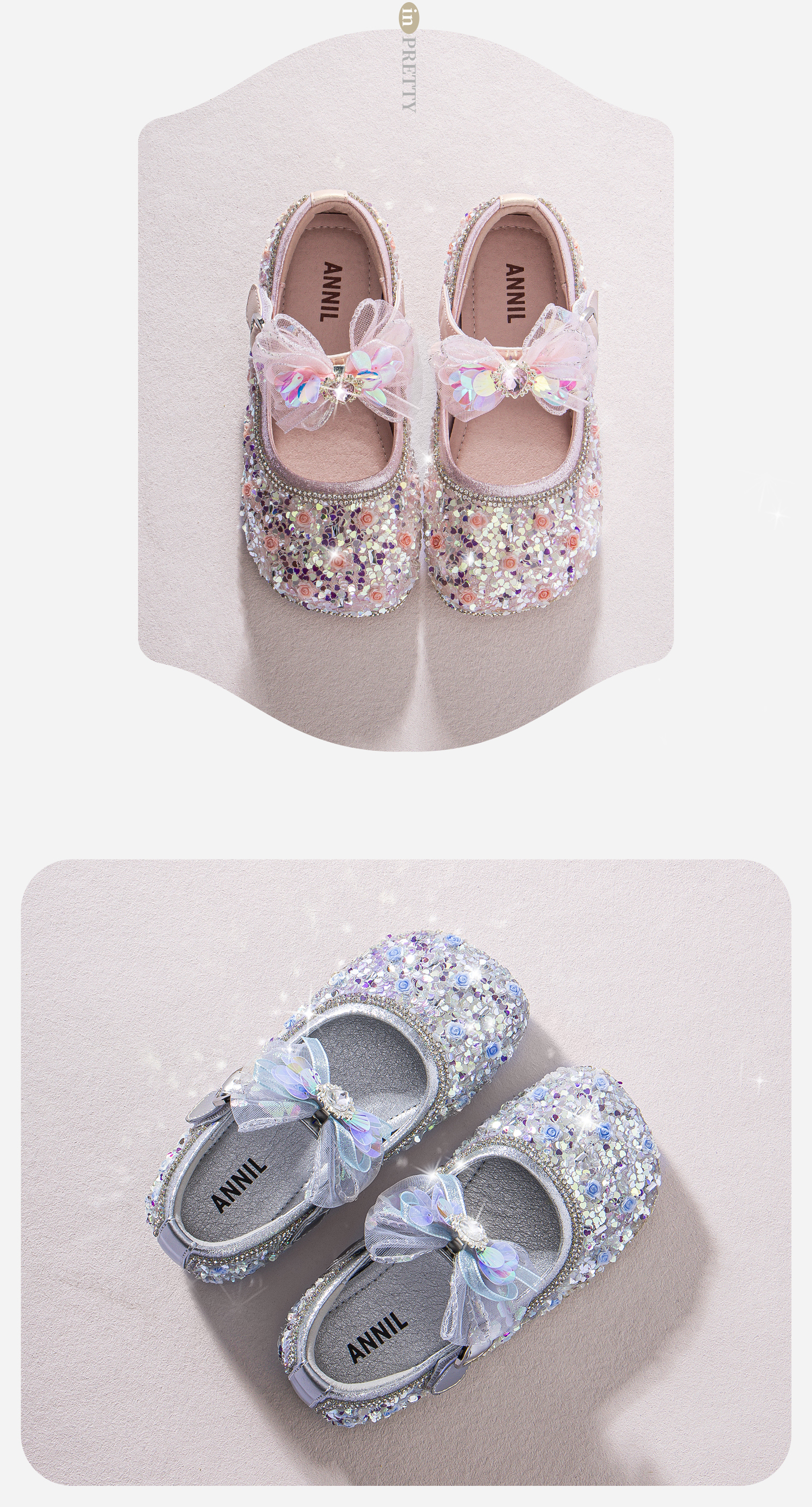 ANNIL/安奈儿2025春季新款女宝宝公主鞋软底女童皮鞋儿童单鞋闪亮水晶鞋HG5101224