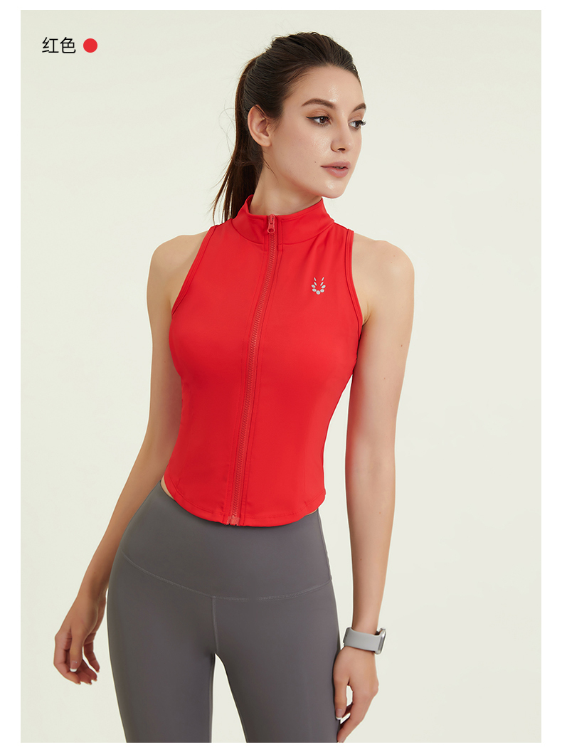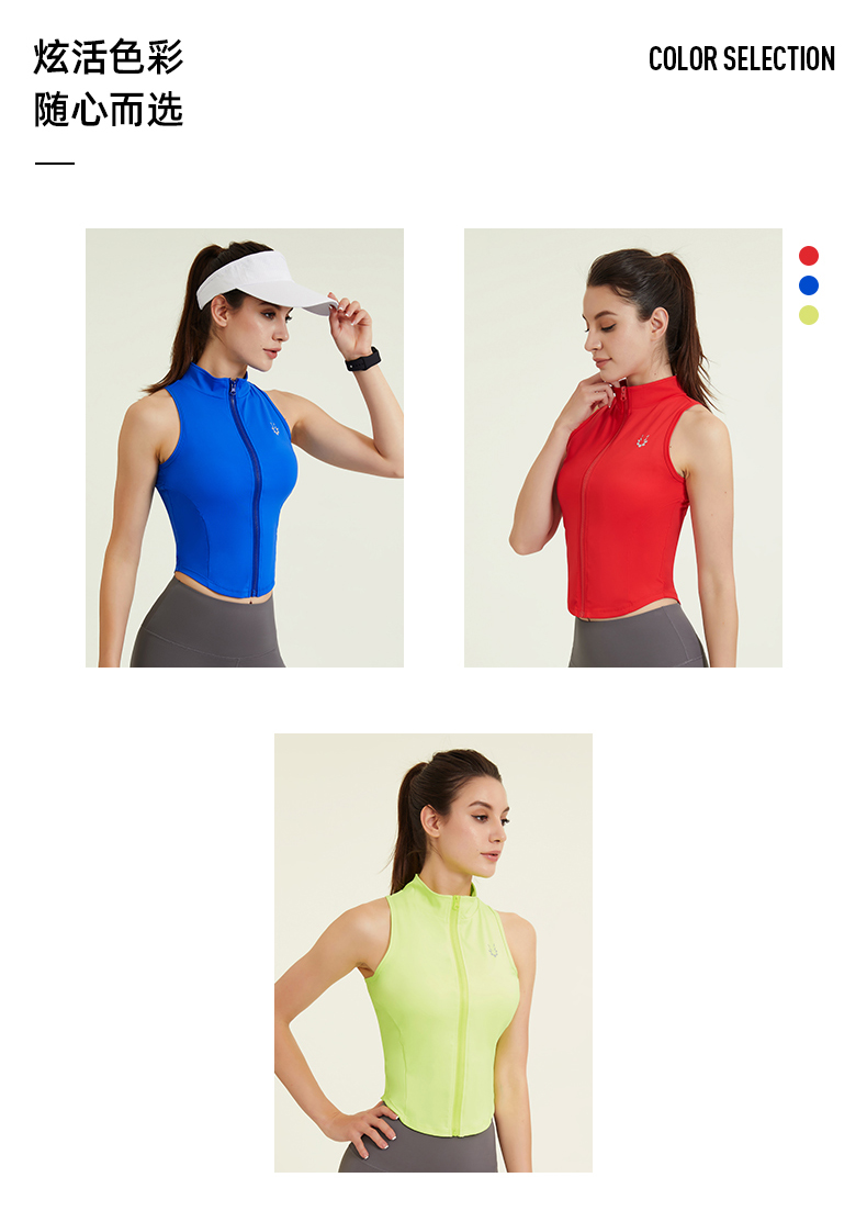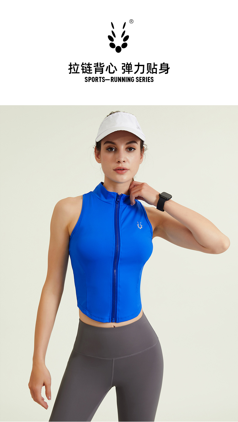 范斯蒂克无袖拉链跑步运动速干背心上衣