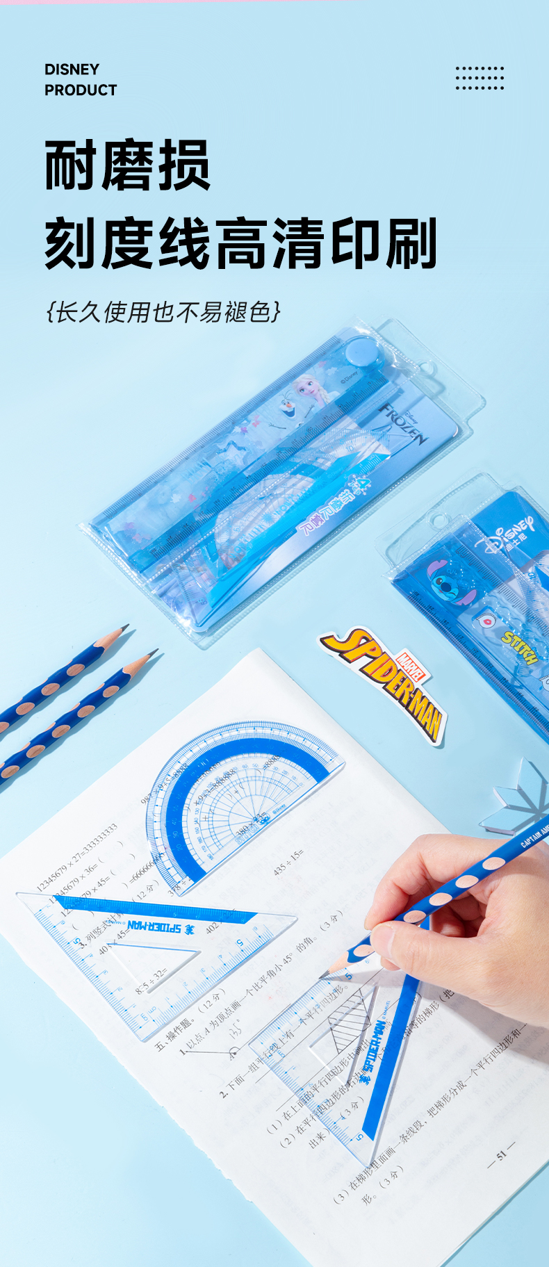 【开团】测评优品-迪士尼尺子套装 直尺 三角板 量角器 可折叠 考试 学生文具