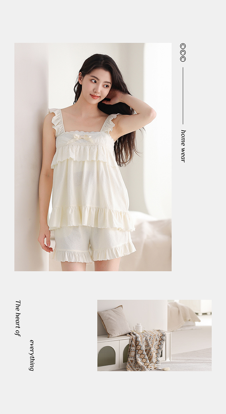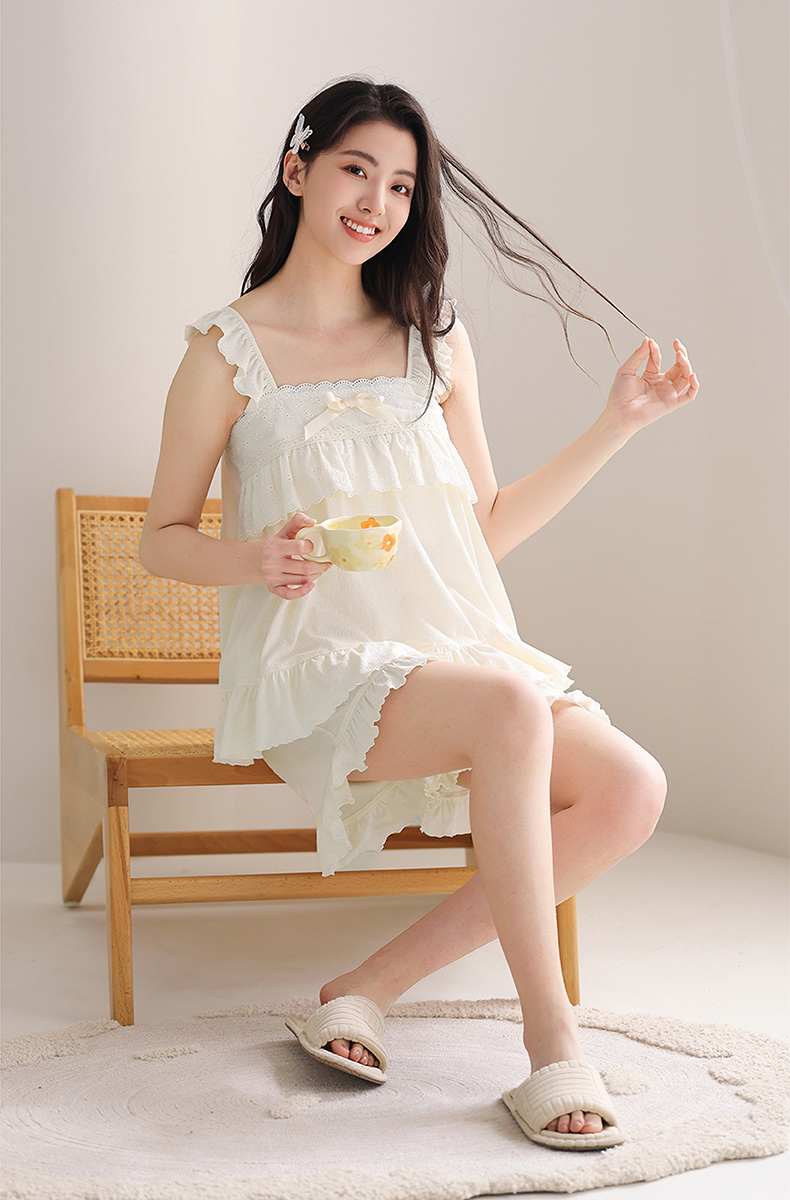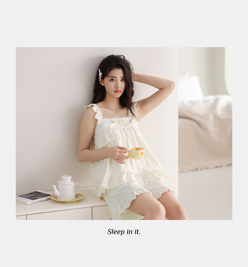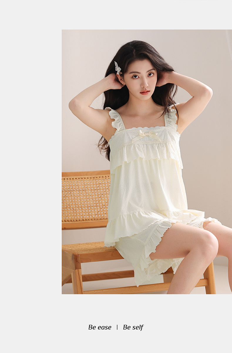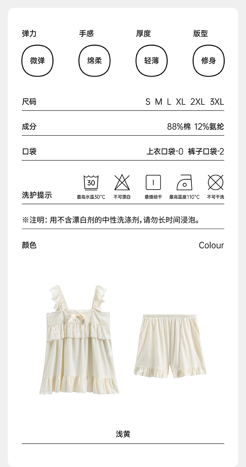 芬腾吊带睡衣女夏季短袖薄款性感蕾丝大码宽松舒适透气家居服套装