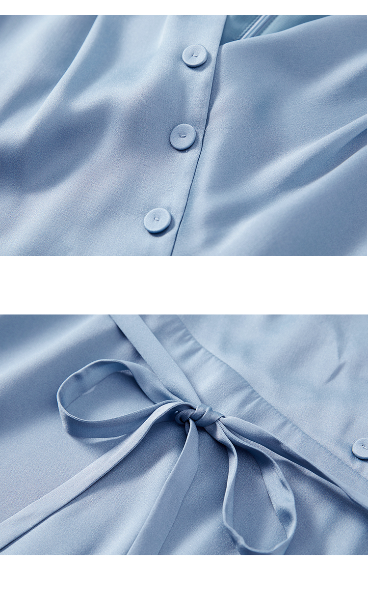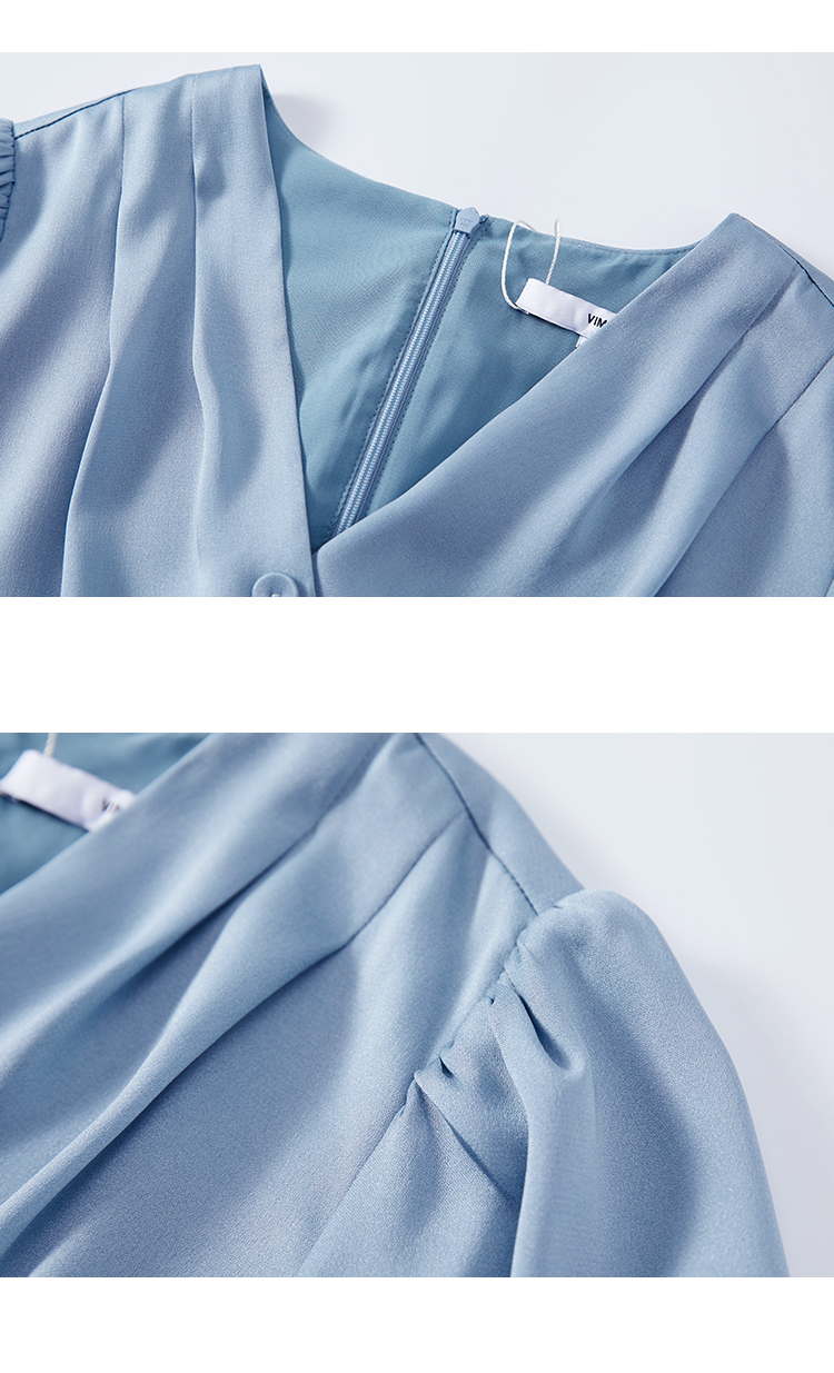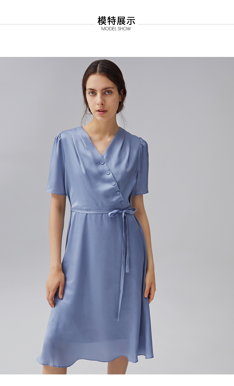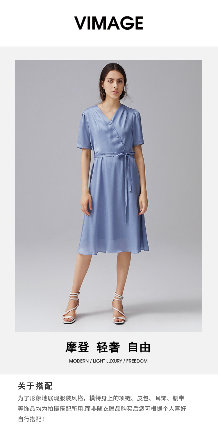 VIMAGE纬漫纪夏季新款V领系带高腰显瘦气质连衣裙长款薄V1507178