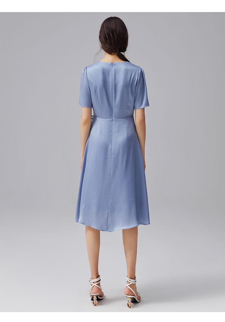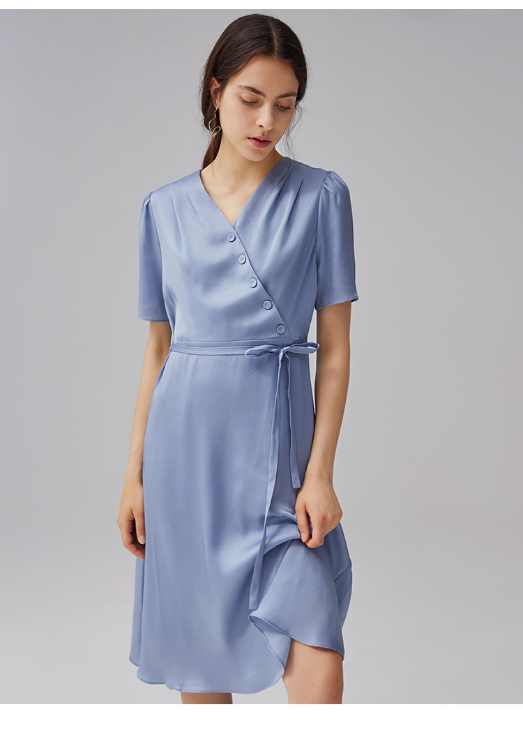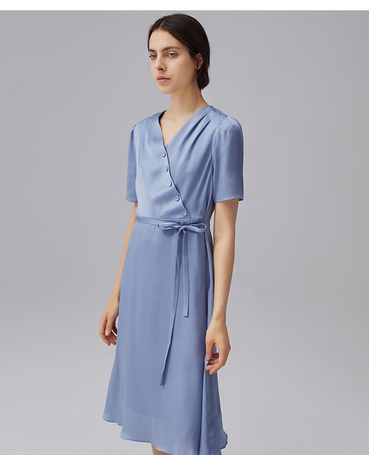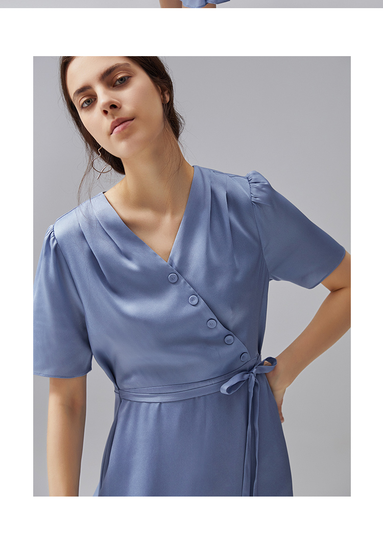 VIMAGE纬漫纪夏季新款V领系带高腰显瘦气质连衣裙长款薄V1507178