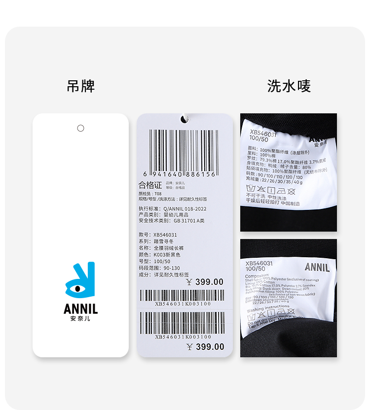 【实体店同款】男童全腰羽绒长裤冬季新款安奈儿童装XB546031
