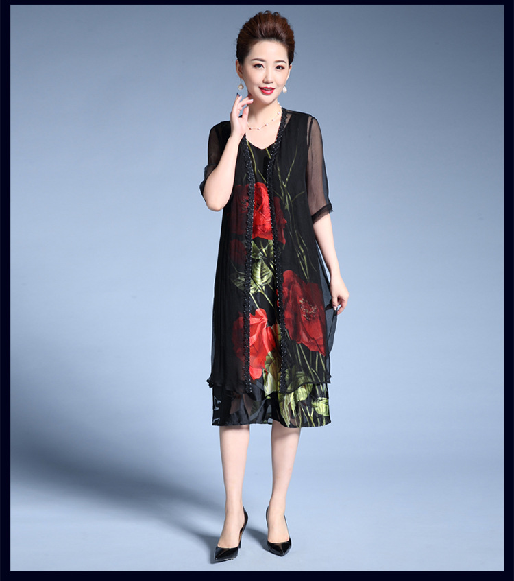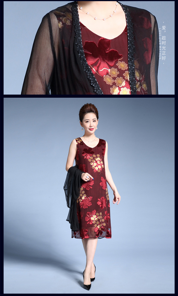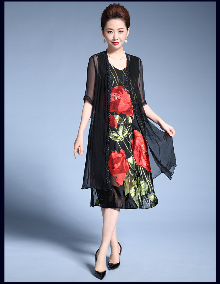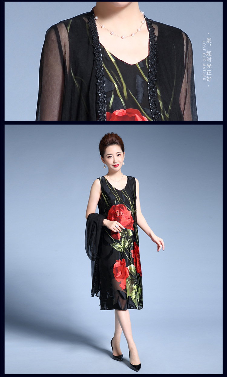MY-82346外搭披肩时尚印花修身显瘦两件套裙