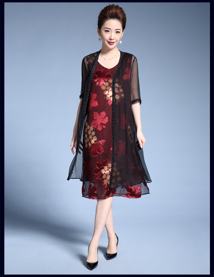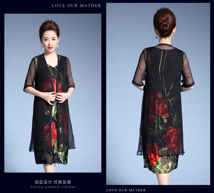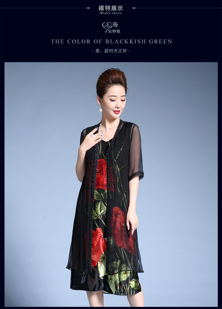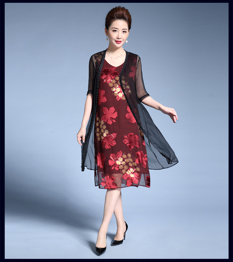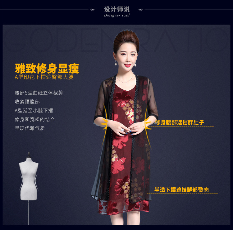 MY-82346外搭披肩时尚印花修身显瘦两件套裙