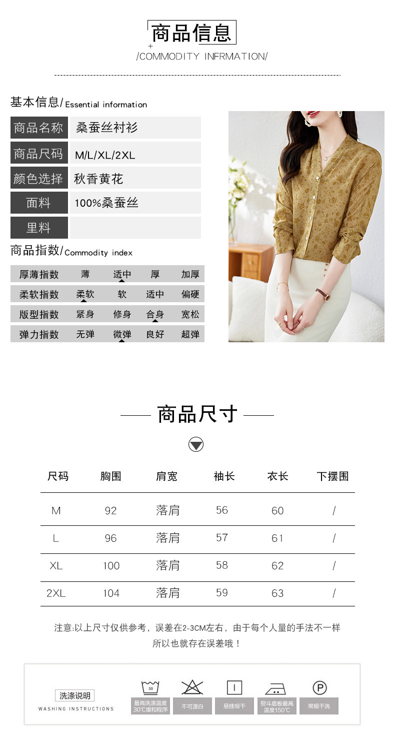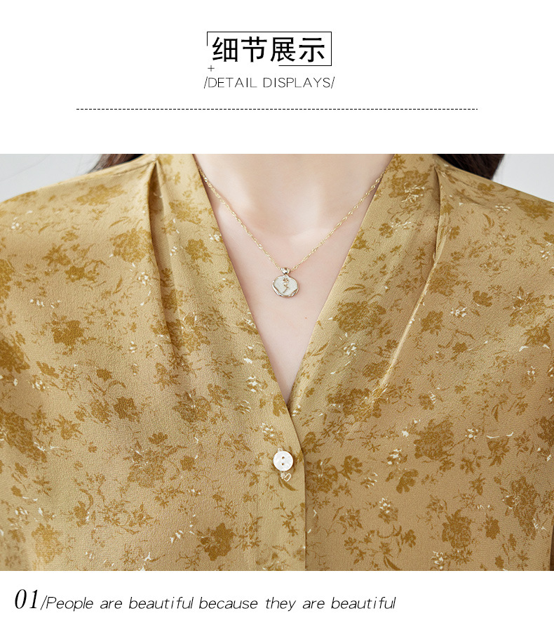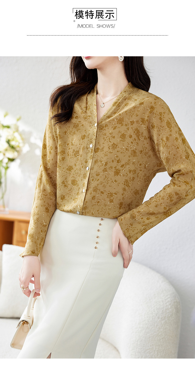 V领桑蚕丝上衣衬衣,气质时尚显瘦百搭真丝衬衫KQN-11339
