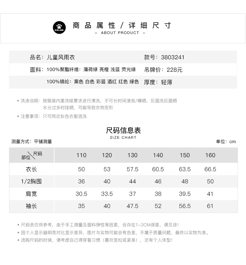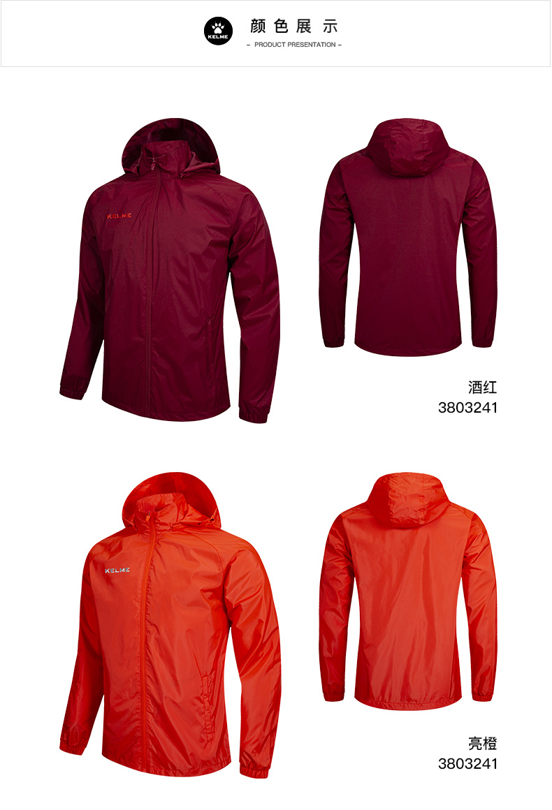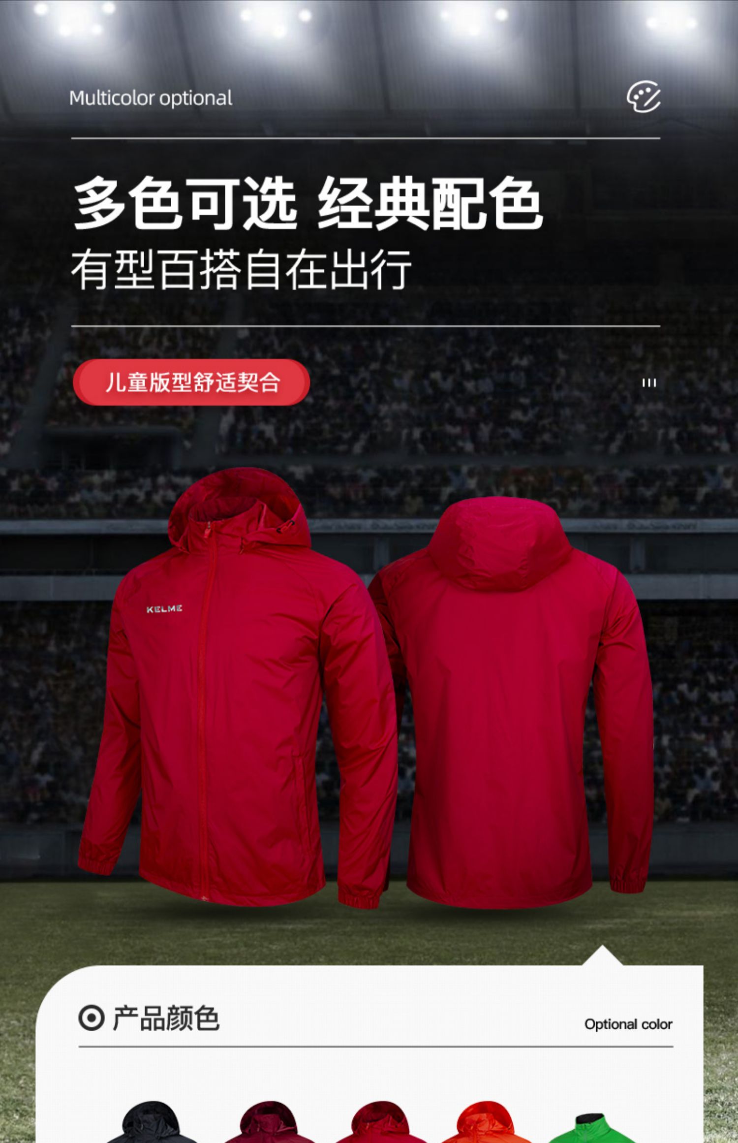 卡尔美运动风雨衣男女儿童秋季足球训练防雨防风外套