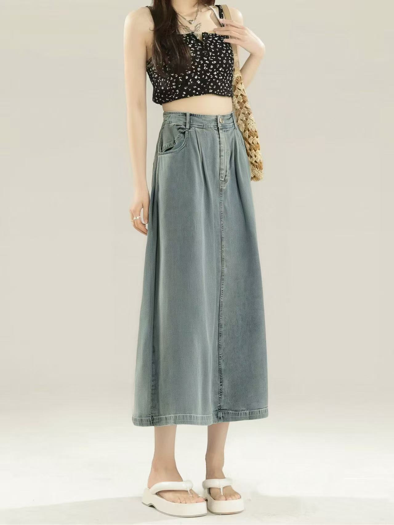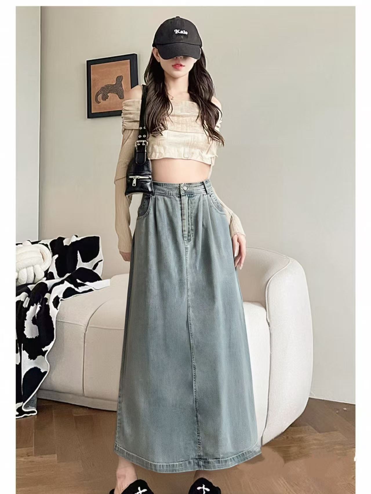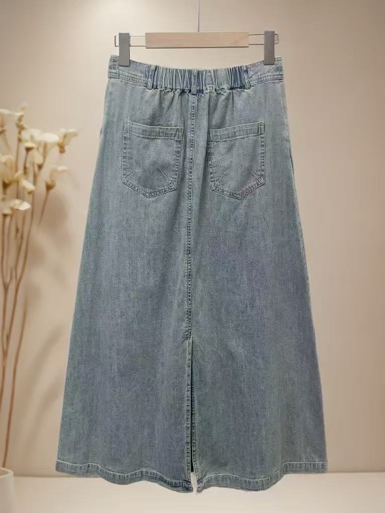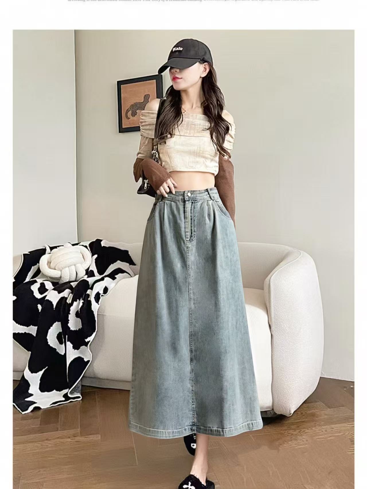 【时装系列】ME TOWN'S 1021 复古做旧100%后开叉长款牛仔半裙M1-2-喜出