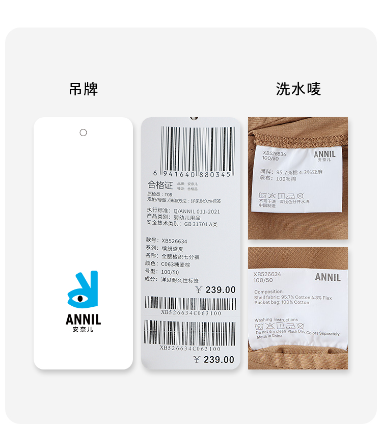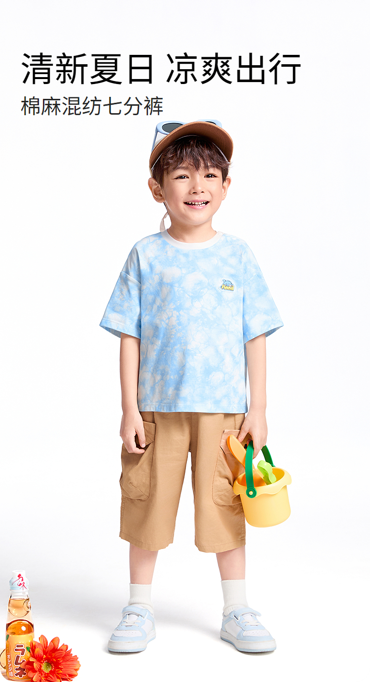 【实体店同款】男童全腰梭织七分裤夏季新款安奈儿童装XB526634