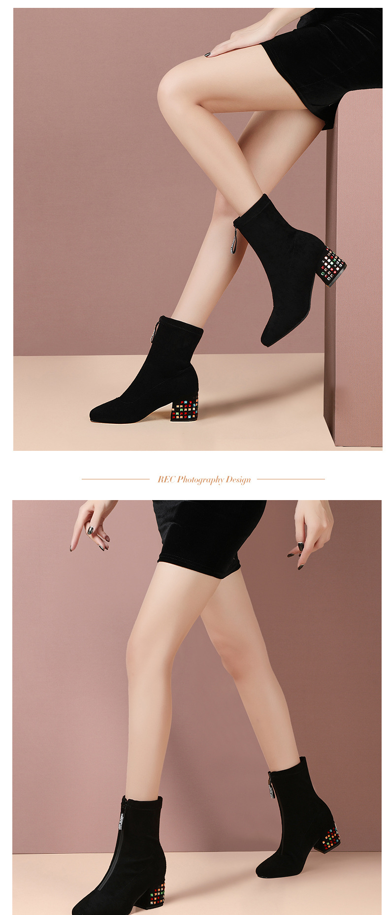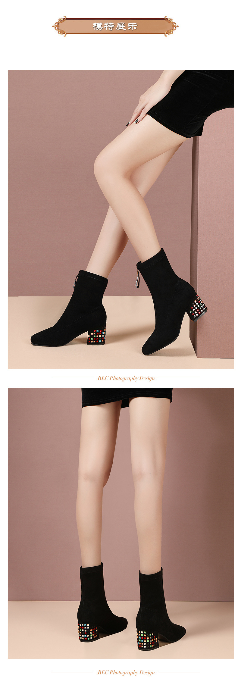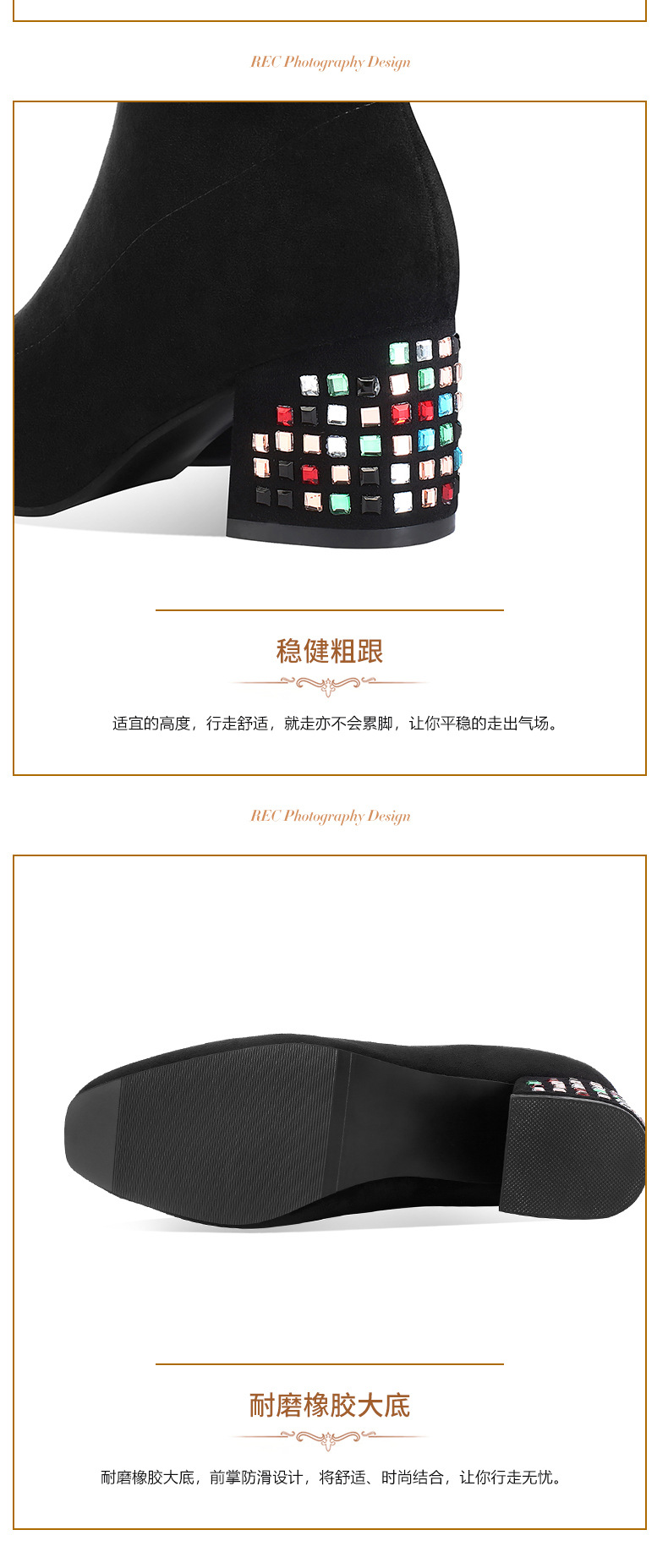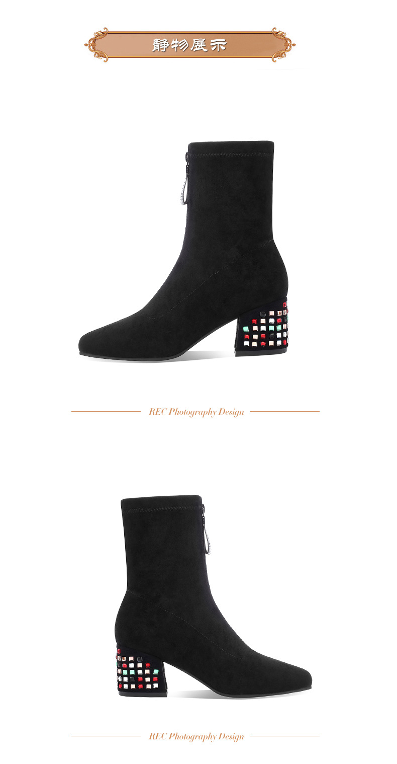SN-8036新款粗跟中筒弹力女靴百搭高跟靴子