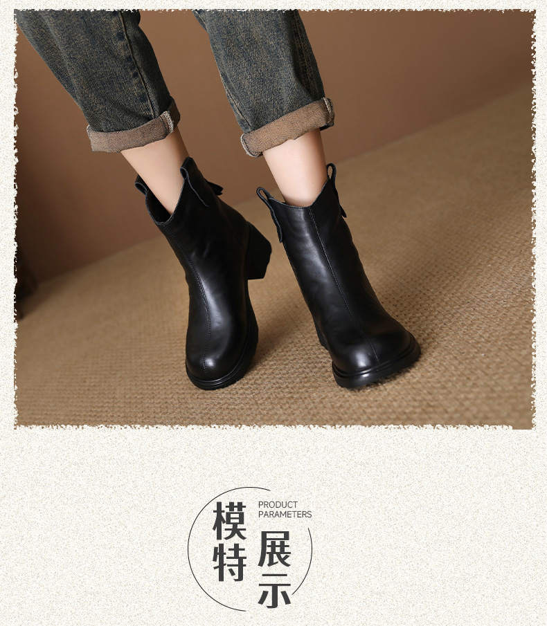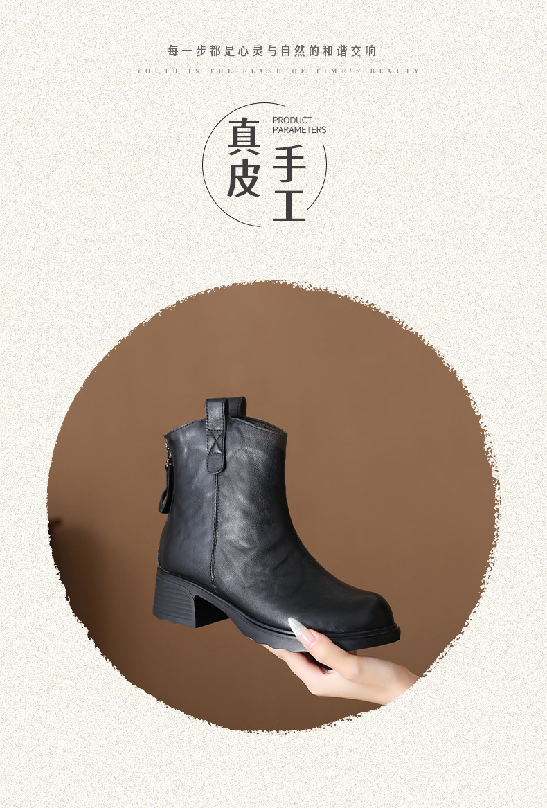 FR 85699短靴西部靴复古保暖绒里粗跟拉链 商品图3