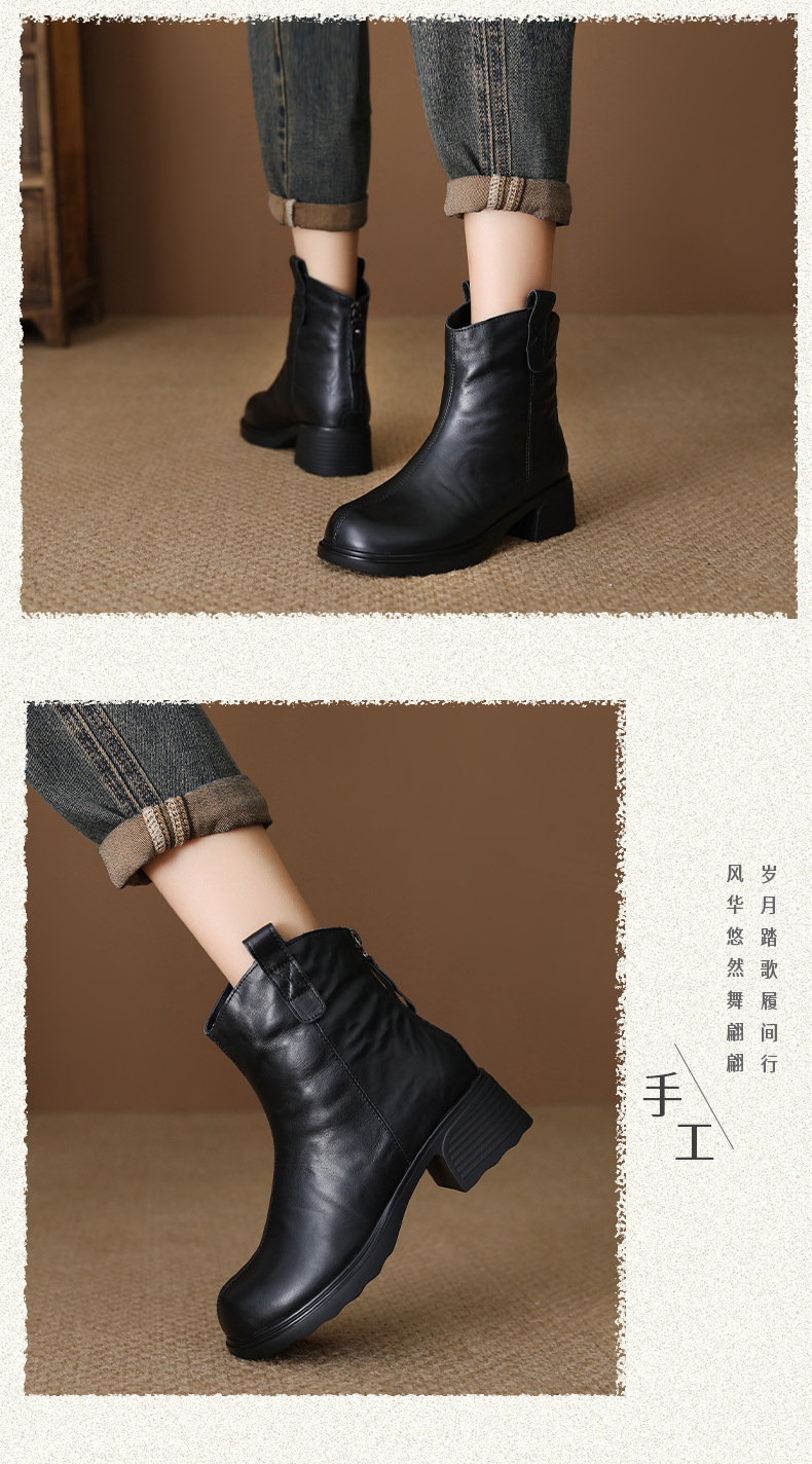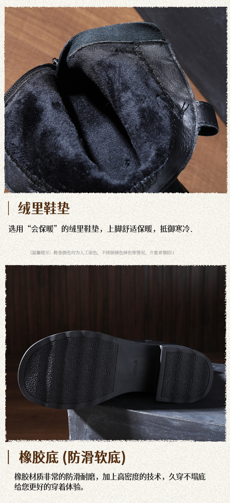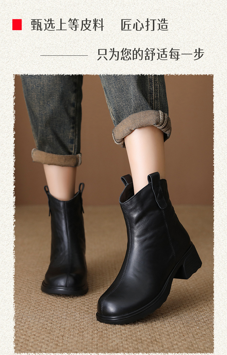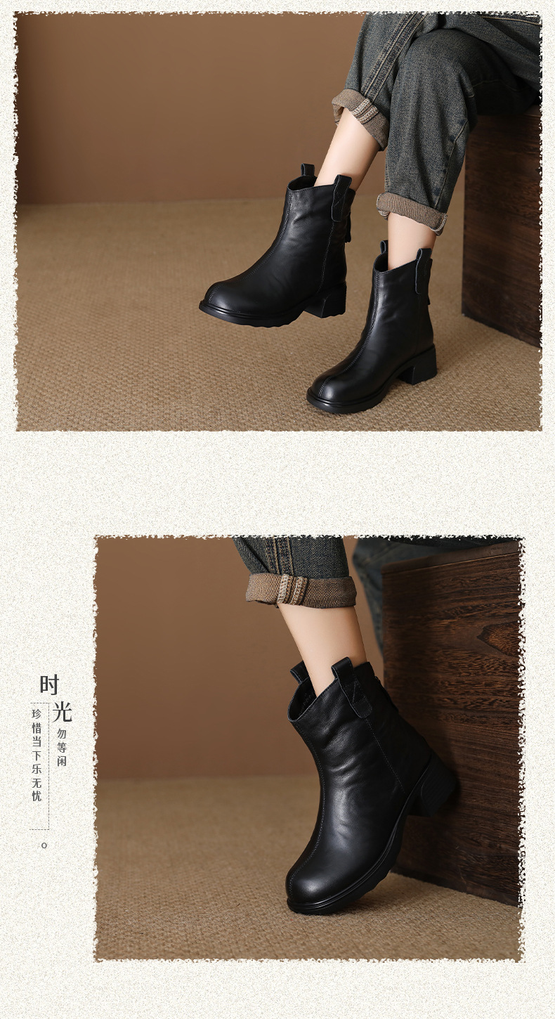 FR 85699短靴西部靴复古保暖绒里粗跟拉链