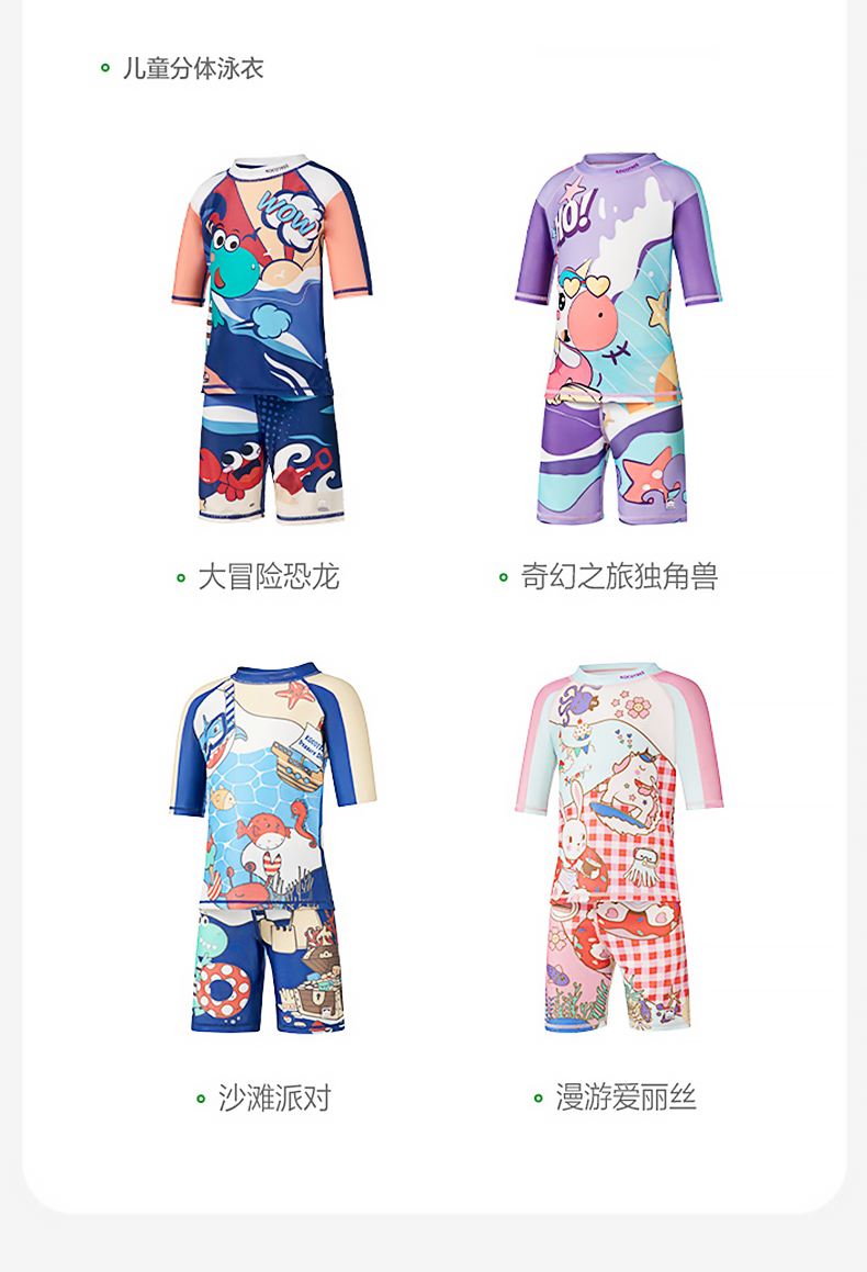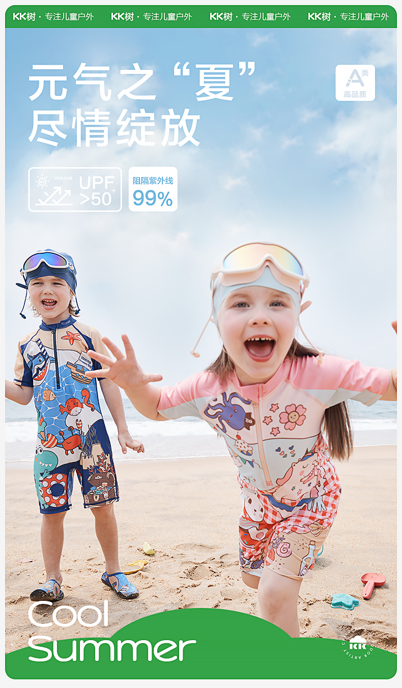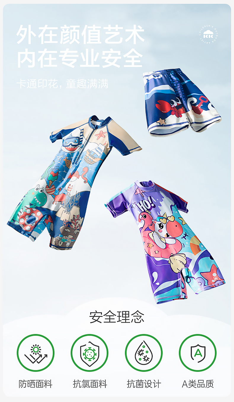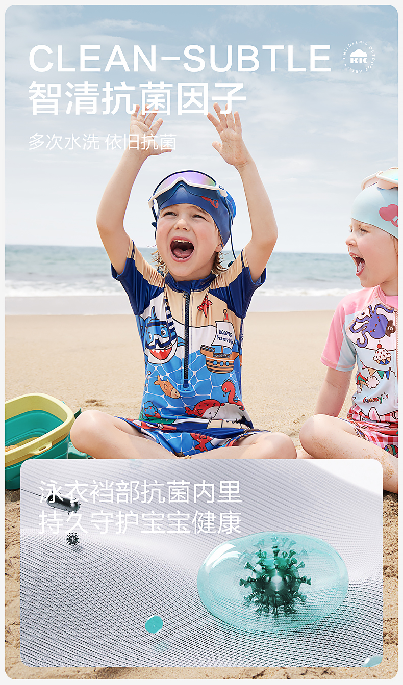 KK树儿童泳衣抗氯男童女孩分连体游泳衣防晒时尚印花大童泳装海滨微风短袖分体泳衣