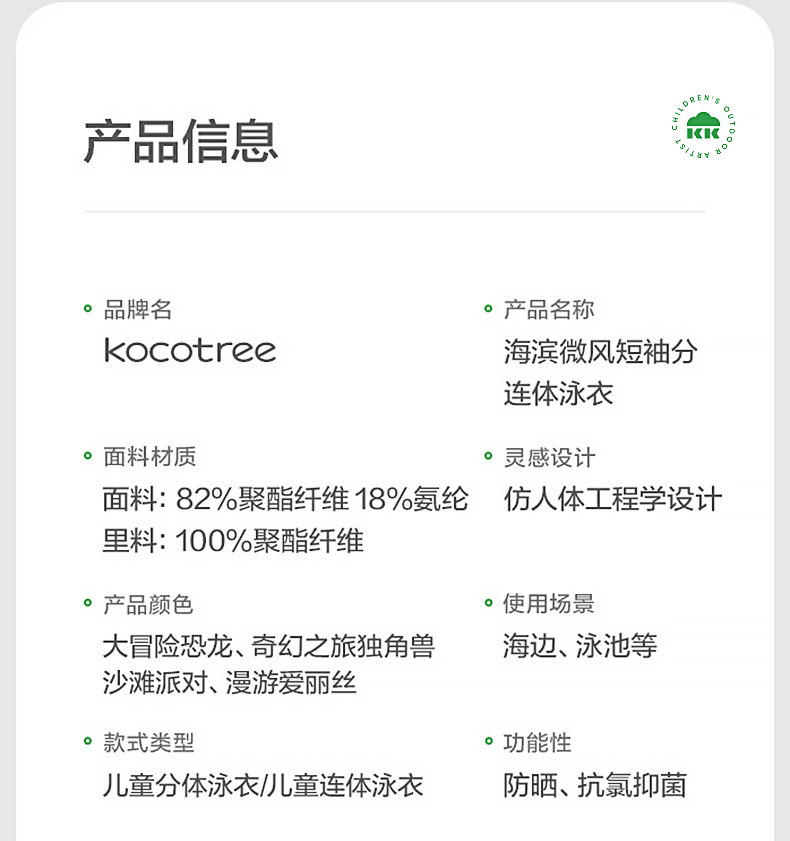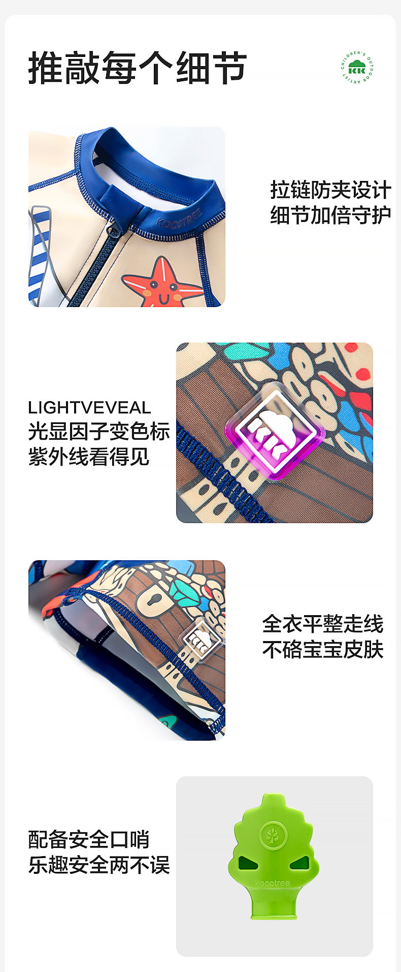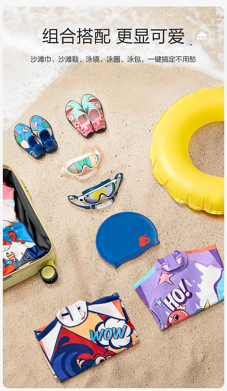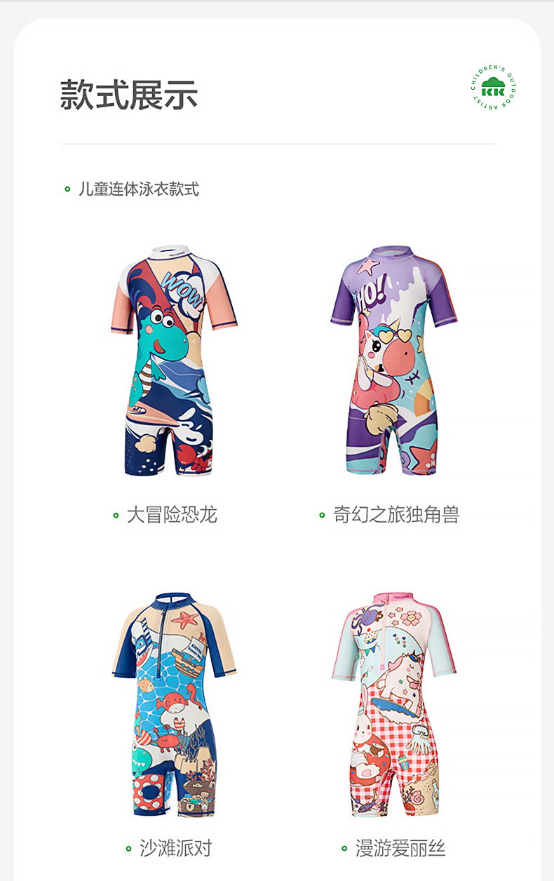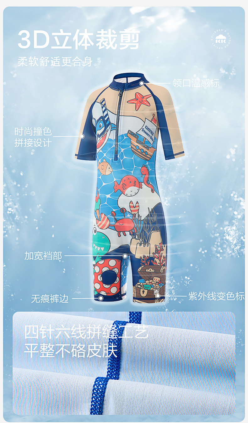 KK树儿童泳衣抗氯男童女孩分连体游泳衣防晒时尚印花大童泳装海滨微风短袖分体泳衣