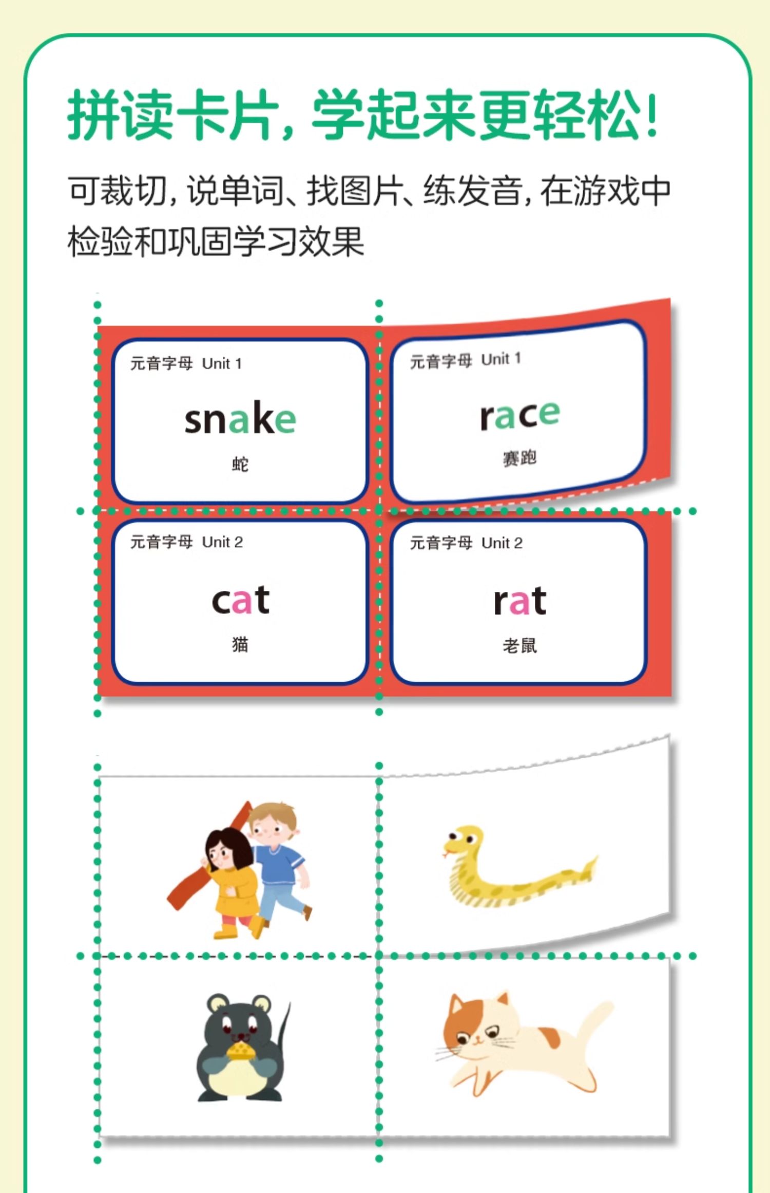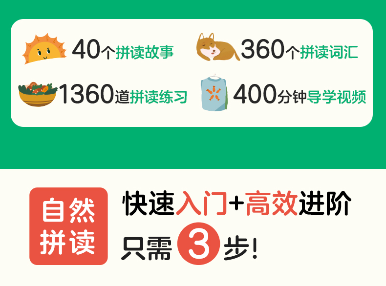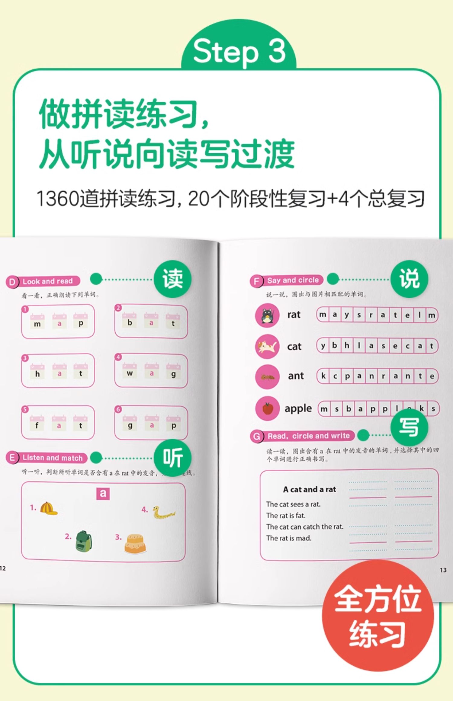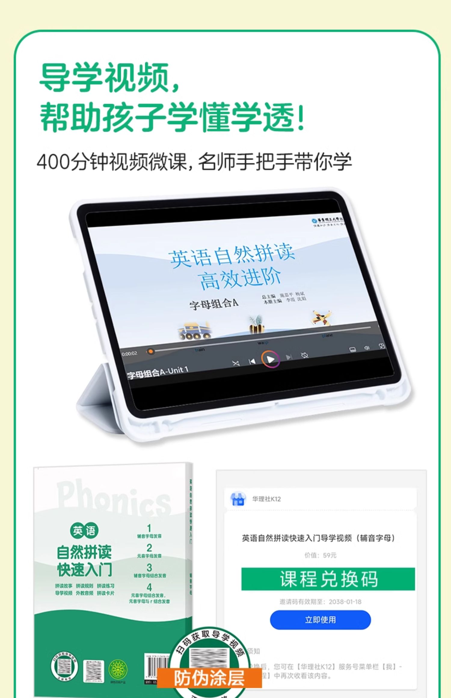 英语自然拼读快速入门高效进阶(赠音频+视频) 拼读故事拼读规则拼读练习导学视频外教音频拼读卡片