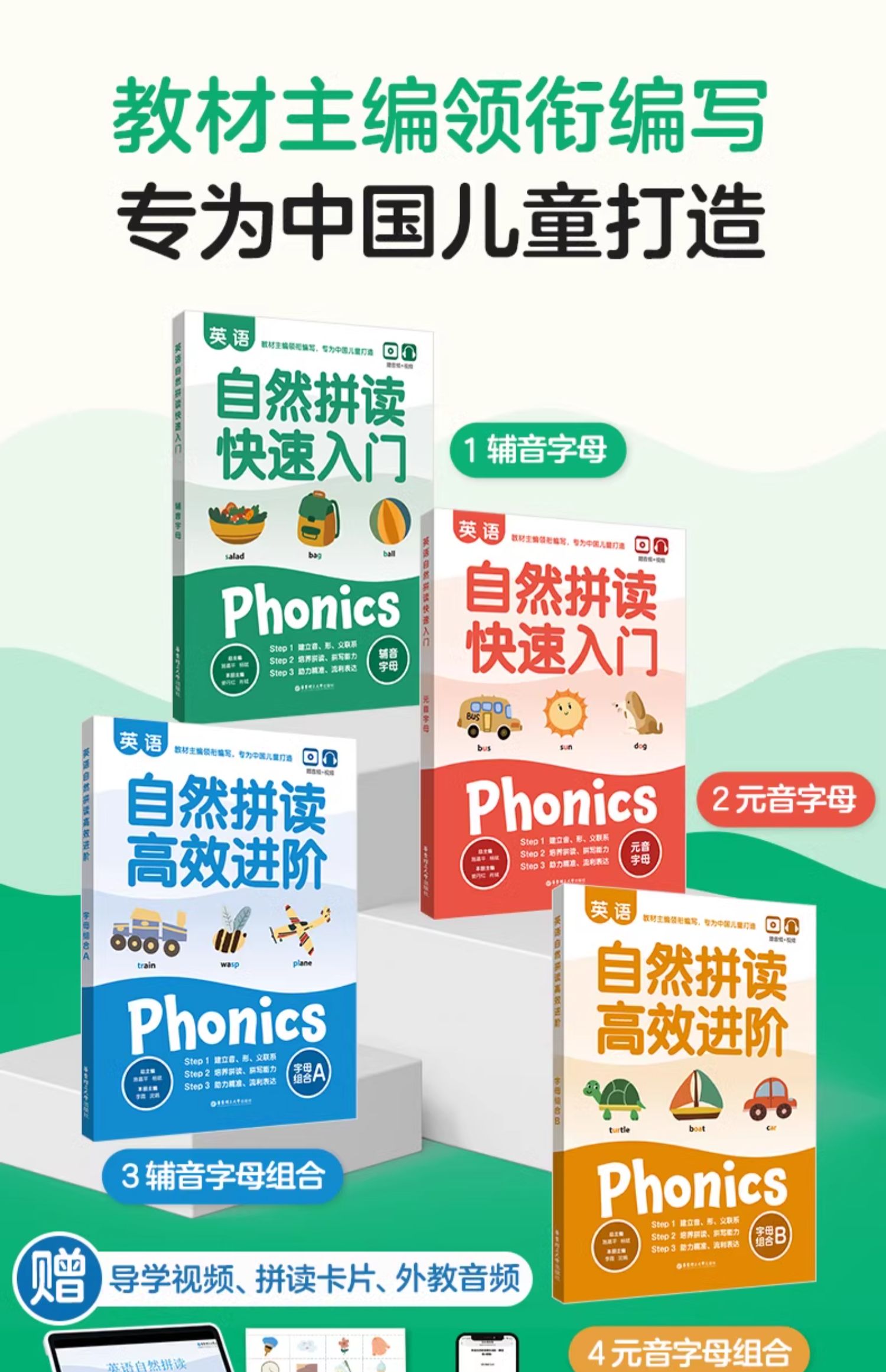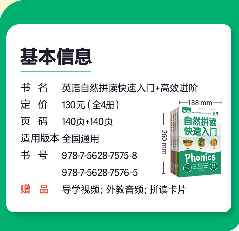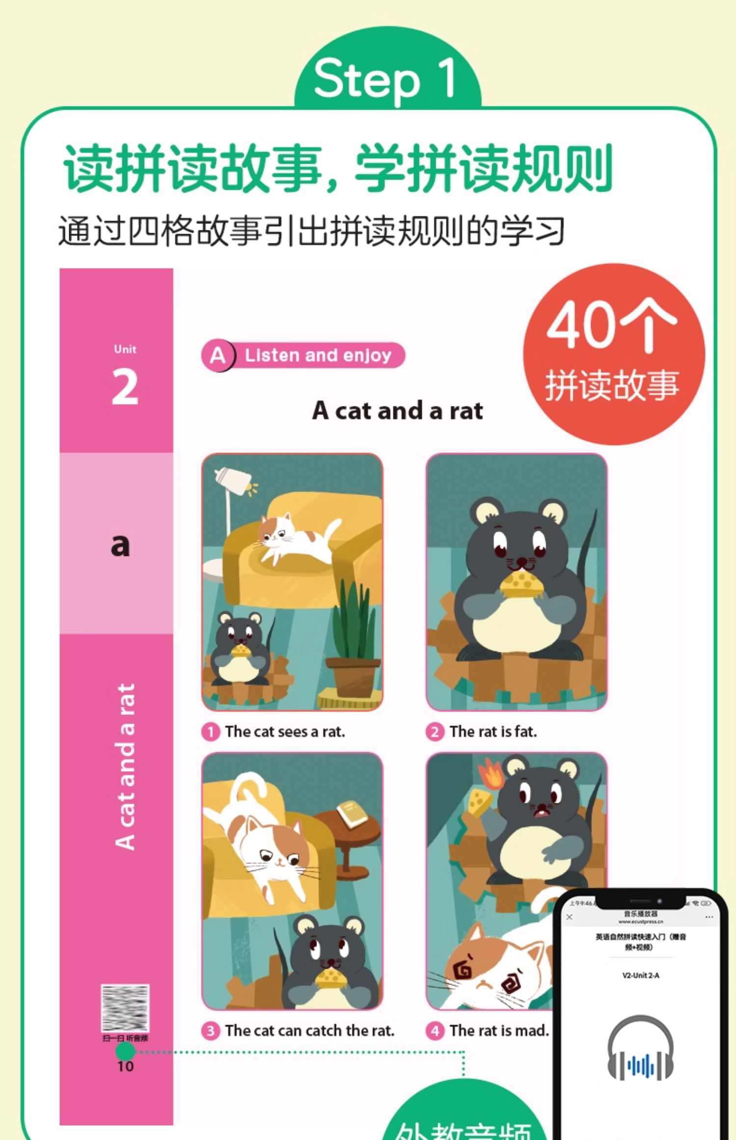 英语自然拼读快速入门高效进阶(赠音频+视频) 拼读故事拼读规则拼读练习导学视频外教音频拼读卡片