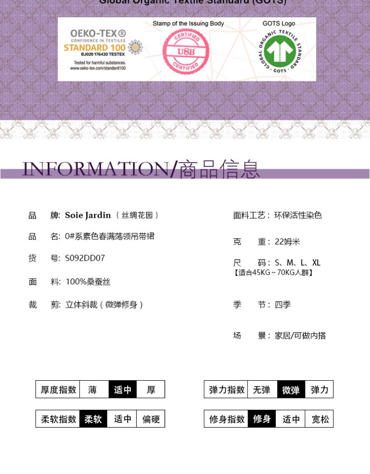南法SJD/soie jardin0#春满桑蚕丝睡裙荡领美背桑蚕丝家居服性感吊带短睡裙S092DD
