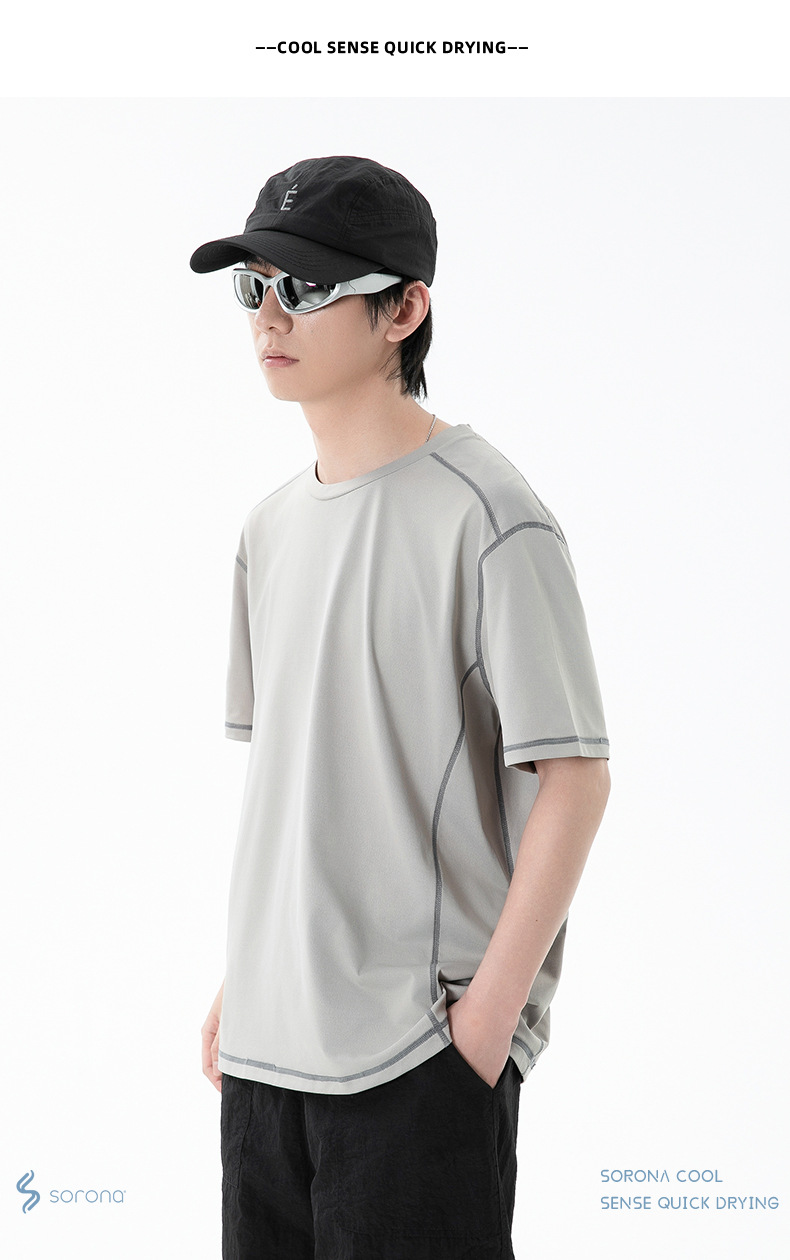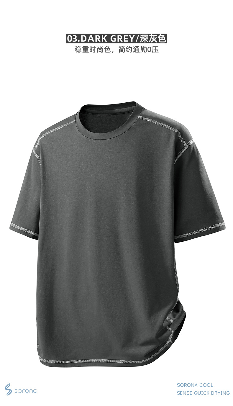 【DH】大依优型大码凉感索罗娜短袖T恤男胖子宽松运动吸湿速干圆领短袖加肥加大上衣