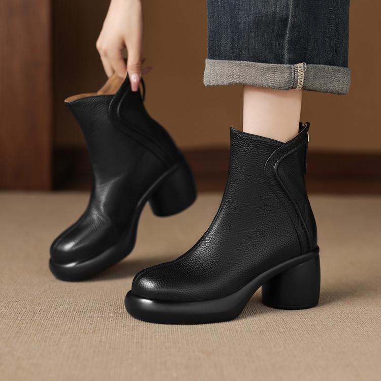 【货 号】A9641【鞋面材质】头层牛皮【鞋 垫】头层猪皮/绒里【内里材质】头层猪皮/绒里【鞋底材质】聚氨酯【跟 高】7.5cm【颜 色】黑色 棕色 米白色【尺 码】34-39