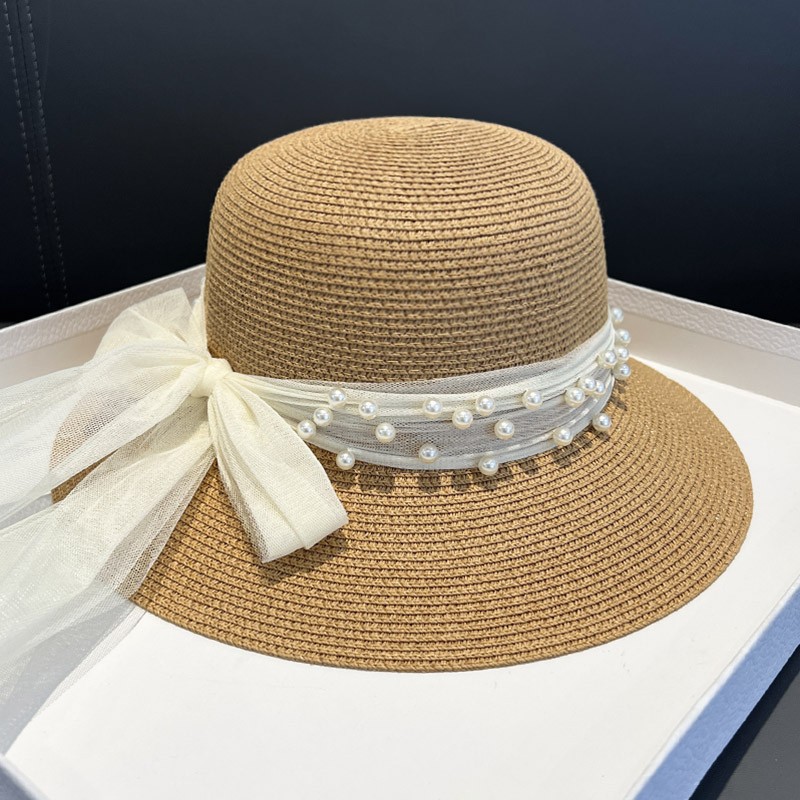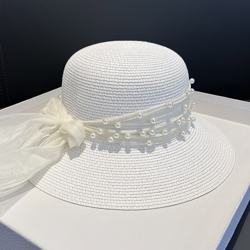 优雅编珍珠网纱,遮阳帽蝴蝶结法式帽LJX-007