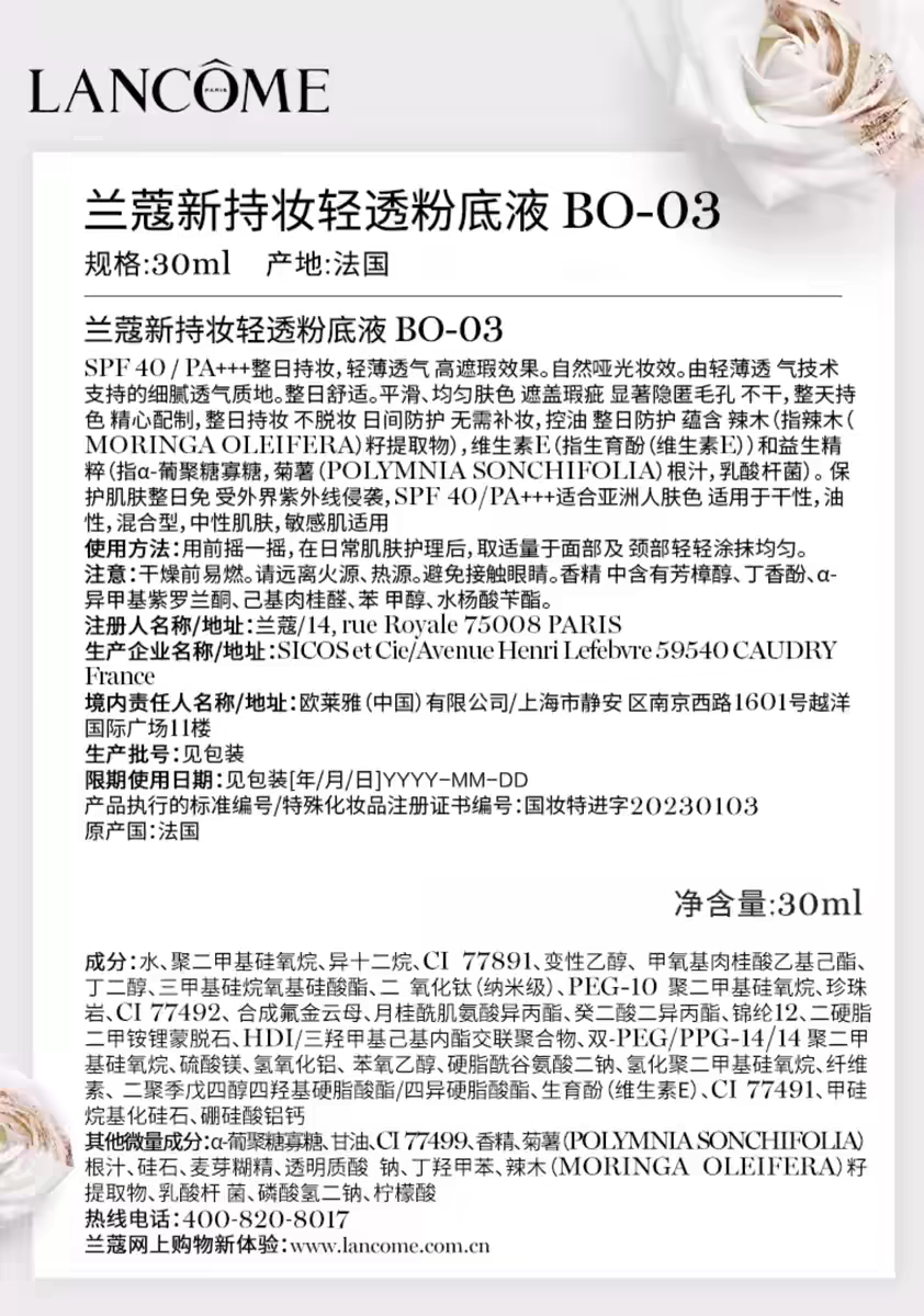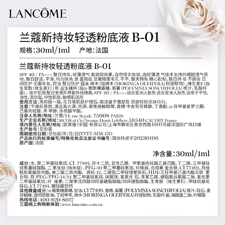 【3月】兰蔻第二代持妆粉底液30ml