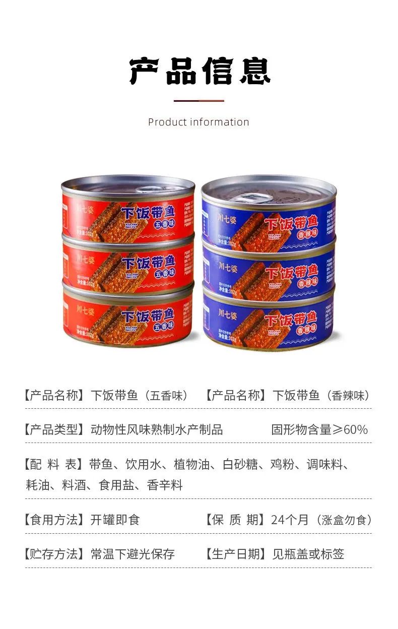 规格2:下饭带鱼五香味6罐
