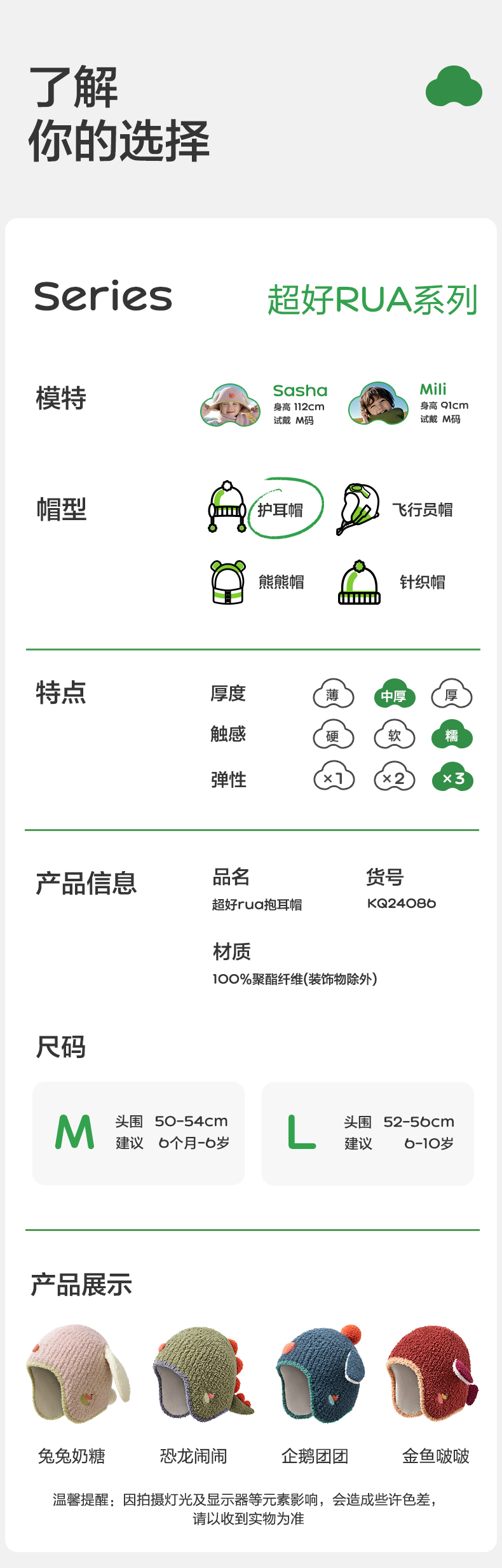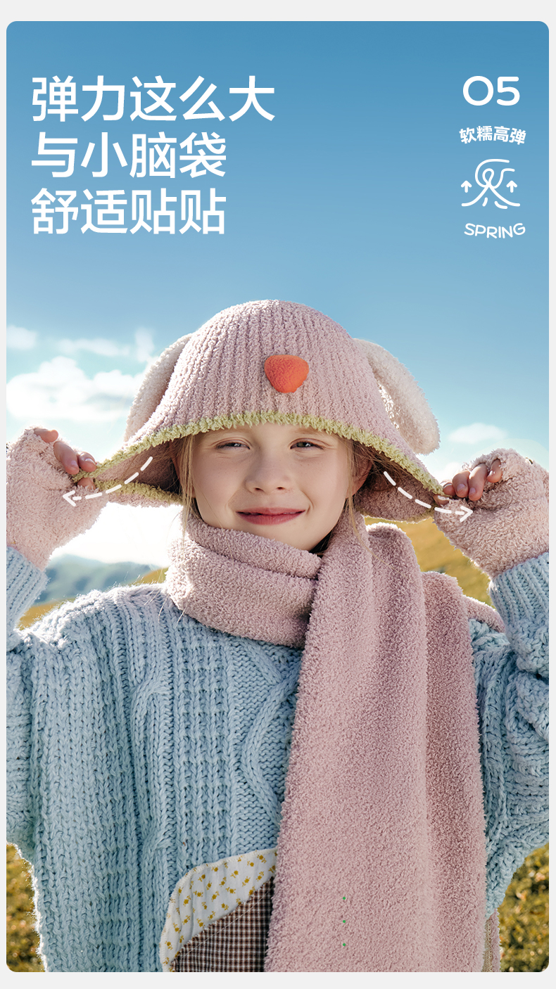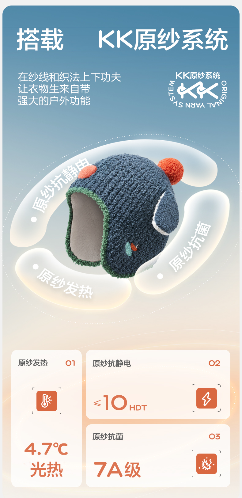 KK树宝宝帽子春秋款儿童针织帽冬护耳2024新款原纱A类女童外出男超好rua抱耳帽